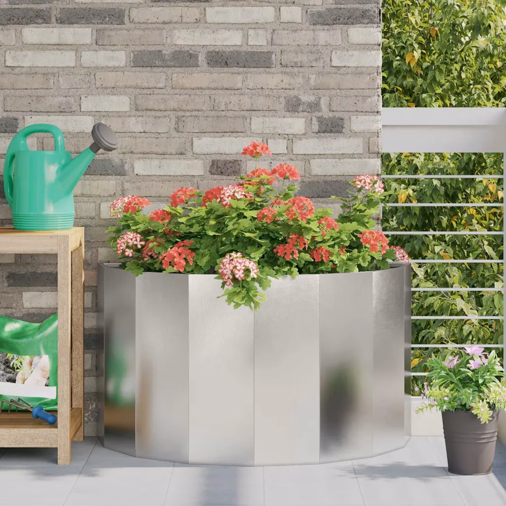 Kui soovid kujundada aeda, terrassi või rõdu selge ja stiilse istutusalaga, pakub see poolringikujuline taimekast funktsionaalset ja visuaalselt mõjuvat lahendust. Vastupidav roostevabast terasest konstruktsioon, kaasaegne hõbedane viimistlus ja läbimõeldud kuju aitavad luua korrastatud ja pilkupüüdva haljastuse, mis täiendab sinu väliruumi aastaid.
