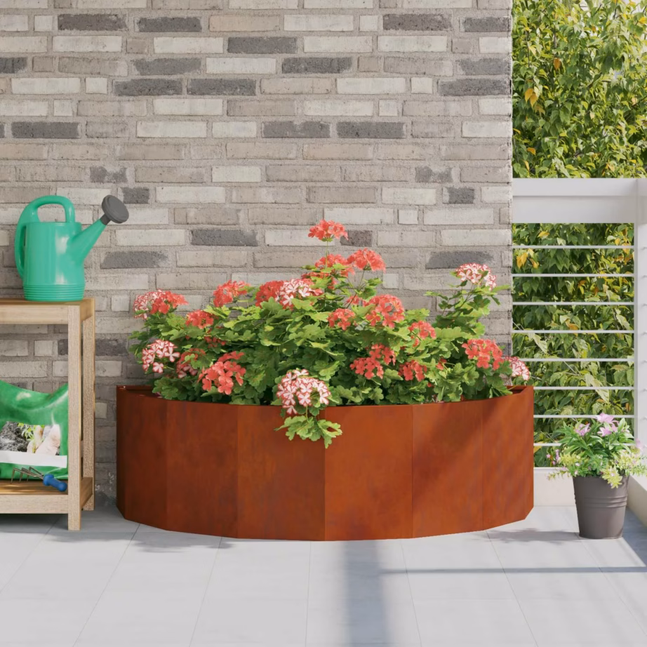 Poolringikujuline taimekast loodusliku roostetooni ja modernse aiakujunduse jaoks