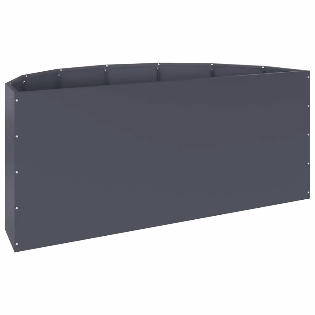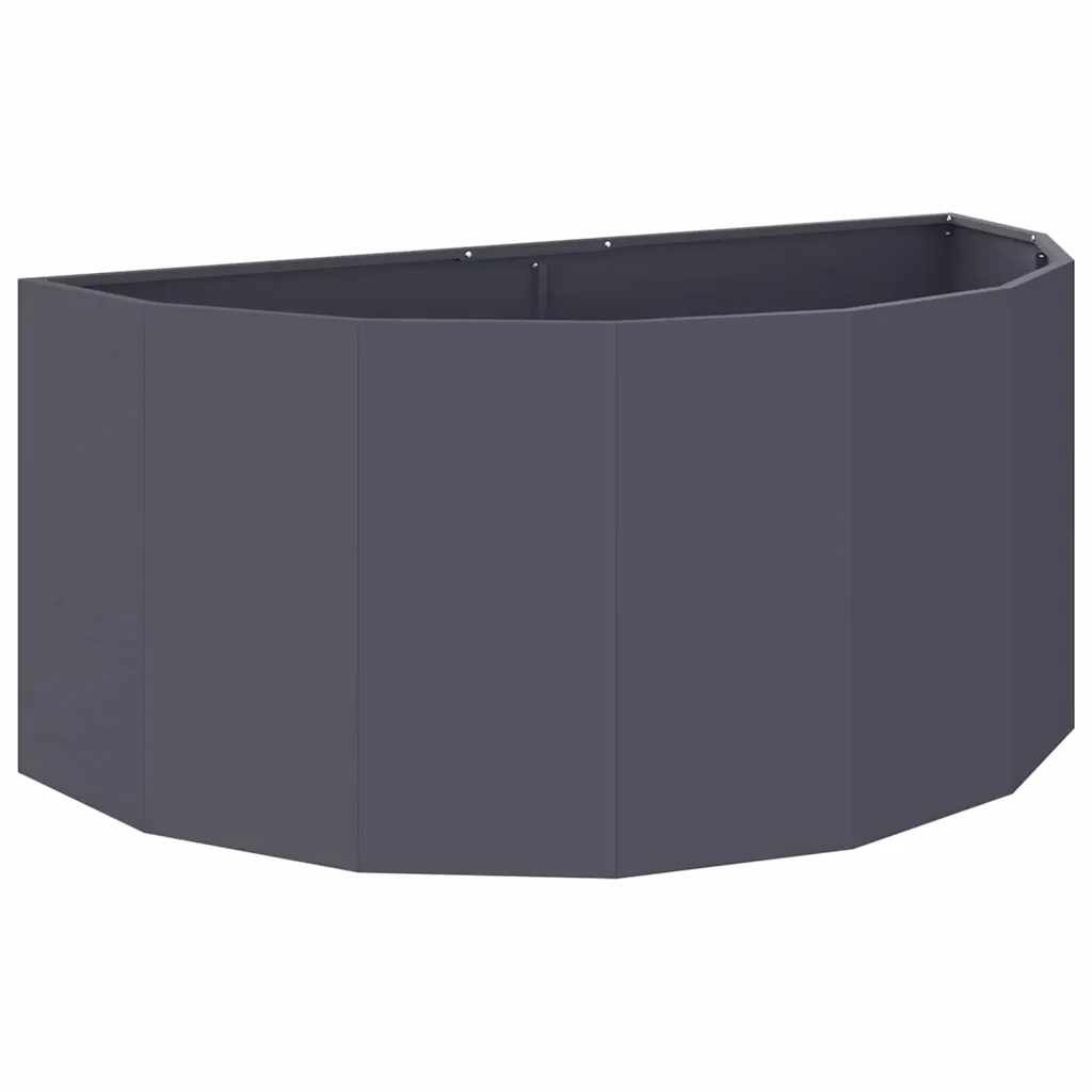 Kui soovid luua korrastatud istutusala seina või piirde ette, pakub see antratsiitne poolringikujuline taimekast ruumisäästlikku ja vastupidavat lahendust. 120 x 60 x 50 cm mõõtmetega ning tugevast terasest konstruktsiooniga kast sobib nii lillede kui maitsetaimede istutamiseks, aidates sul kujundada ühtse ja hooldatava välisruumi.