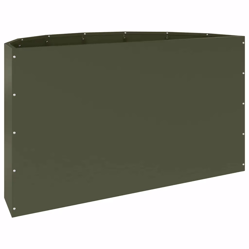 Kui soovid oma aeda, terrassi või rõdu kiiresti ja selgelt piiritletud haljastusalaga täiendada, on see oliiviroheline poolringikujuline terasest taimekast praktiline lahendus. Vastupidav materjal, ruumisäästlik kuju ja lihtne hooldus teevad sellest sobiva valiku nii esinduslikesse kui ka igapäevastesse väliruumidesse.