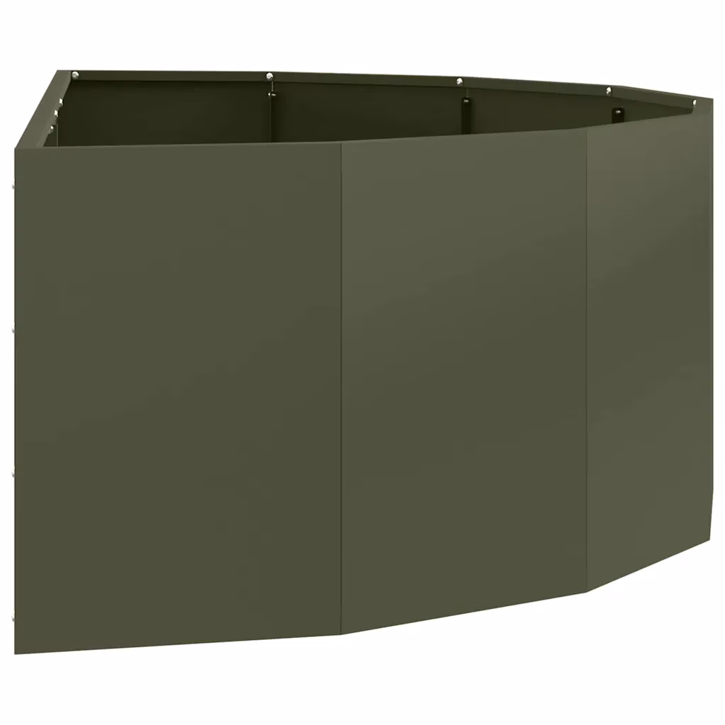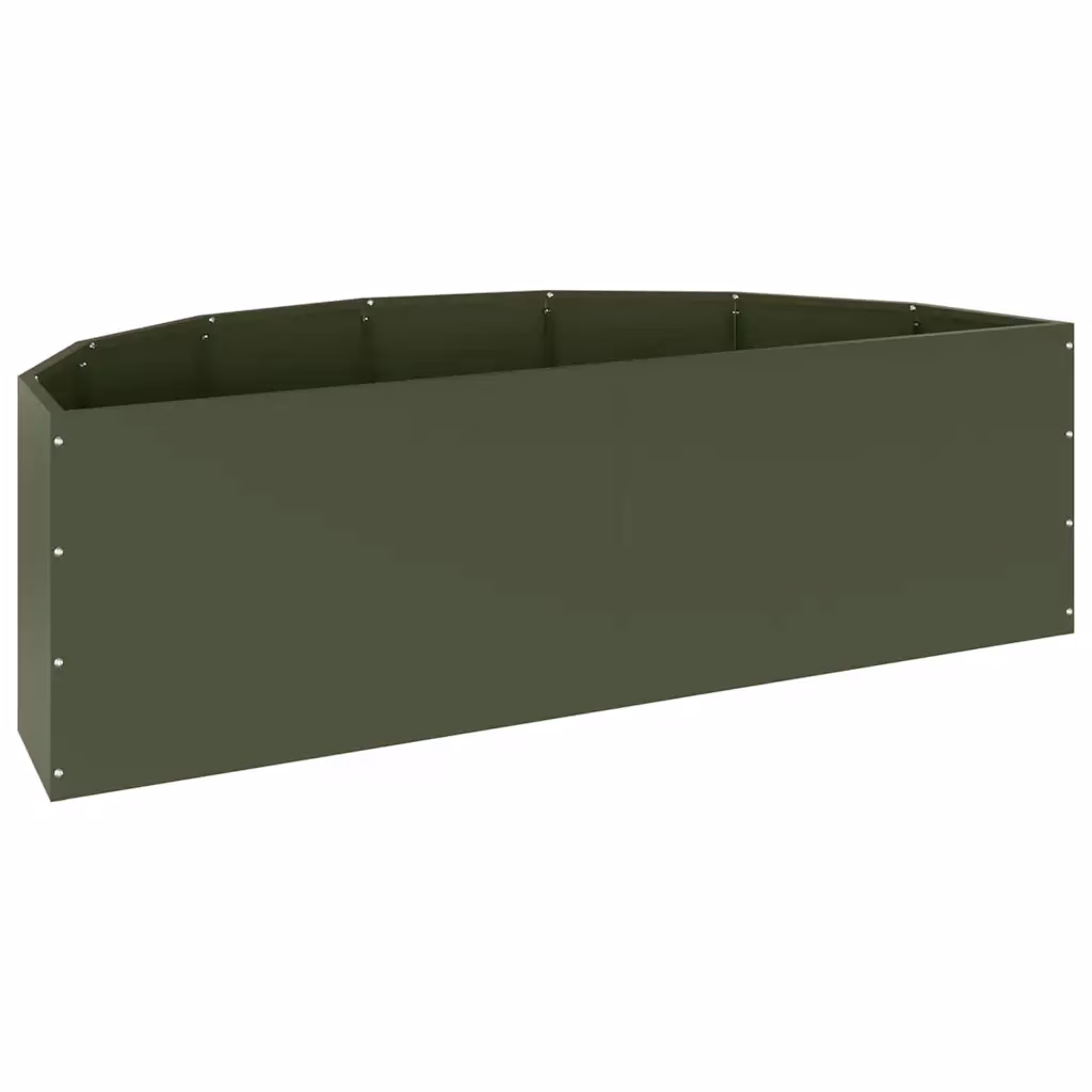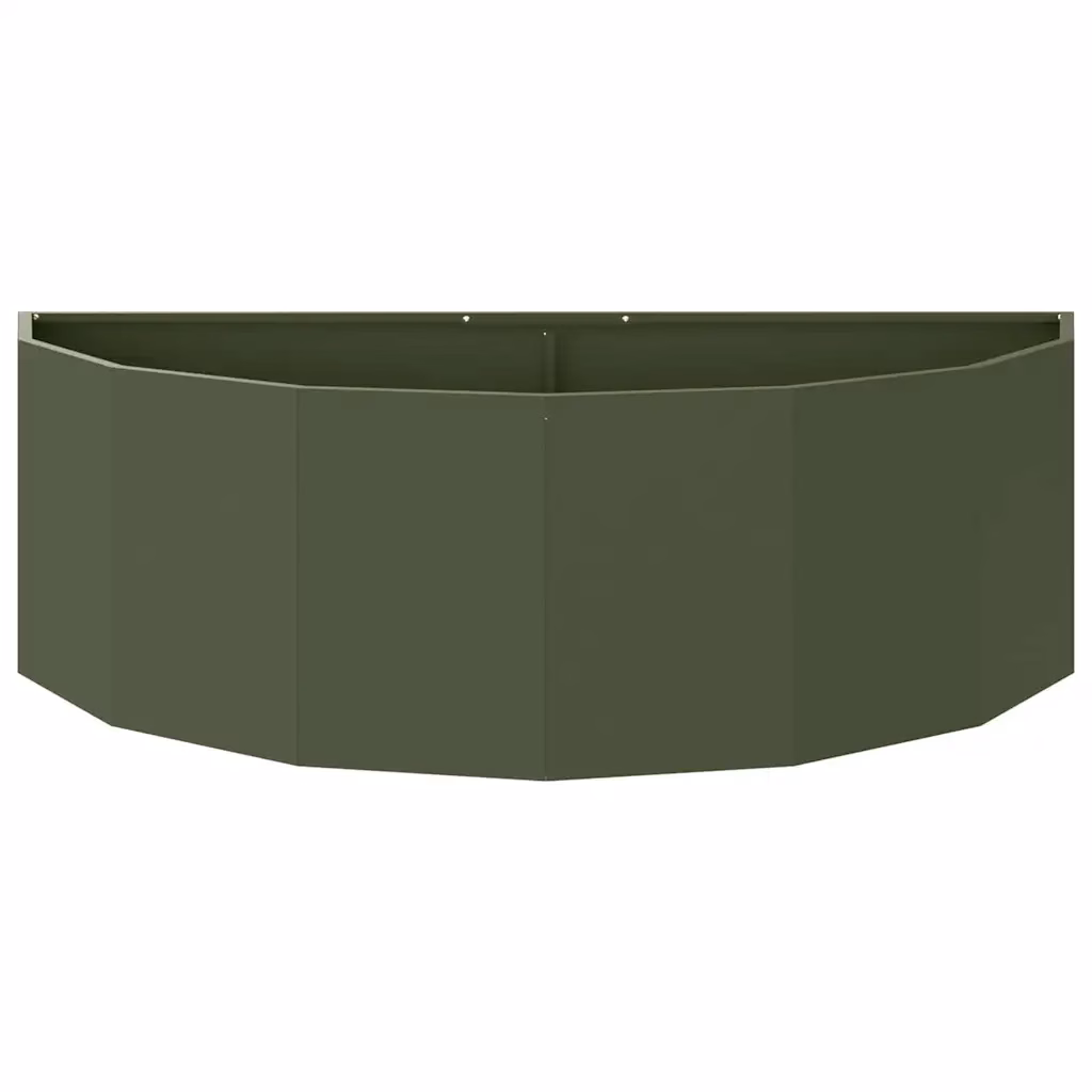 See taimekast pakub funktsionaalset ja ruumisäästlikku lahendust lillede ja maitsetaimede kasvatamiseks, sobitudes hästi nii väiksematele rõdudele kui ka suurematesse aedadesse. Poolringikujuline vorm loob elegantse fookuspunkti seina või tara ääres, tugev teras pikendab kasutusiga ja tagasihoidlik oliivroheline toon sobitub erinevate haljastuslahendustega.