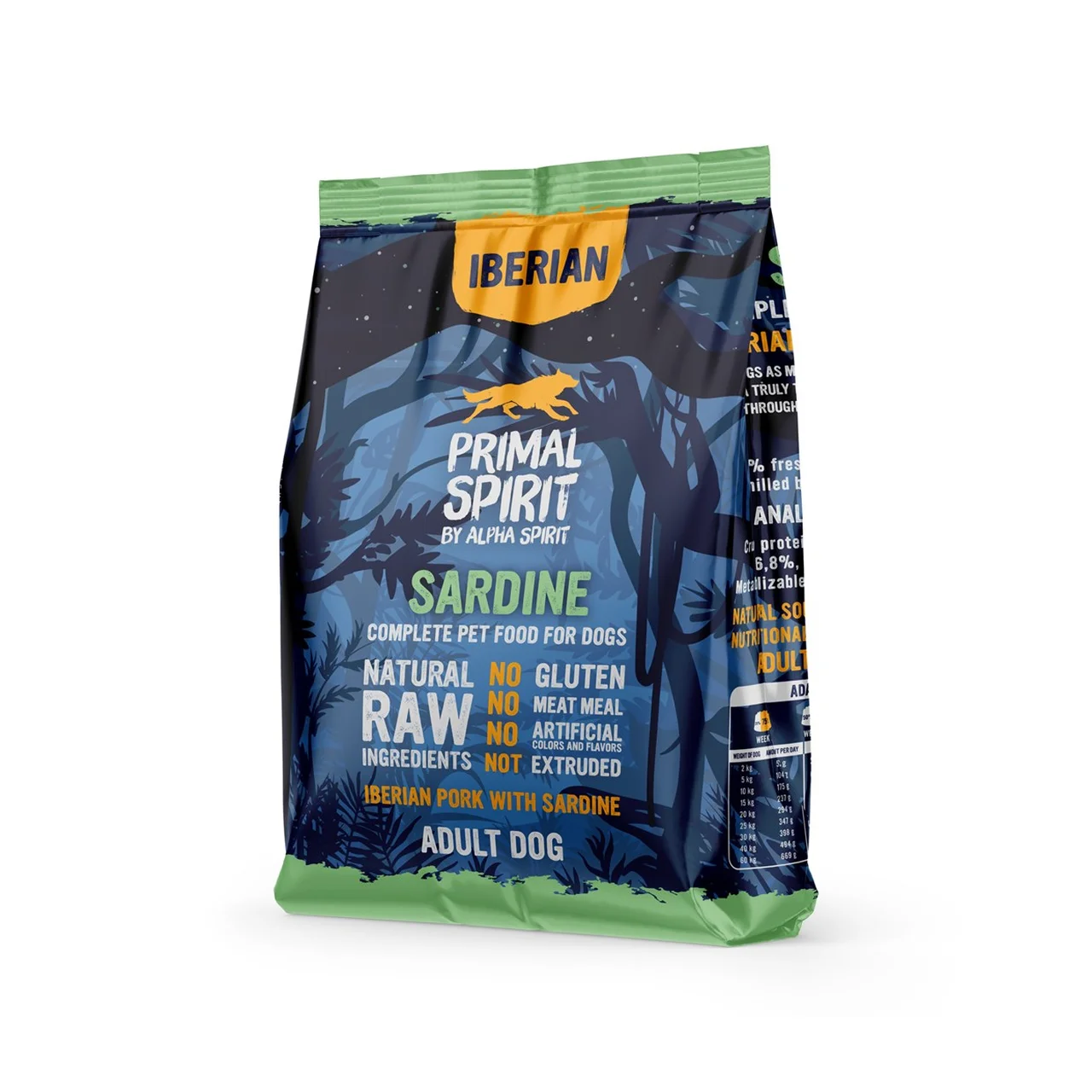 PRIMAL SPIRIT Iberian Sardine on täisväärtuslik poolniiske koeratoit, mis sobib kõikidele täiskasvanud koertele sõltumata tõust ja suurusest. See kõrge lihasisaldusega toit sisaldab 70% värskeid loomseid koostisosi ning aitab toetada nii toiduallergiatega, tundliku seedimise kui teraviljatalumatusega koerte heaolu. Koostises on rohkelt sardiini ning ibeeria sealiha, olles samal ajal maitsev, gluteenivaba ja kunstlikest lisanditest vaba. PRIMAL SPIRIT poolniiske koostis muudab krõbinad pehmemaks ning sobivaks ka koertele, kellel on tundlikud hambad või kes eelistavad pehmemat toitu.