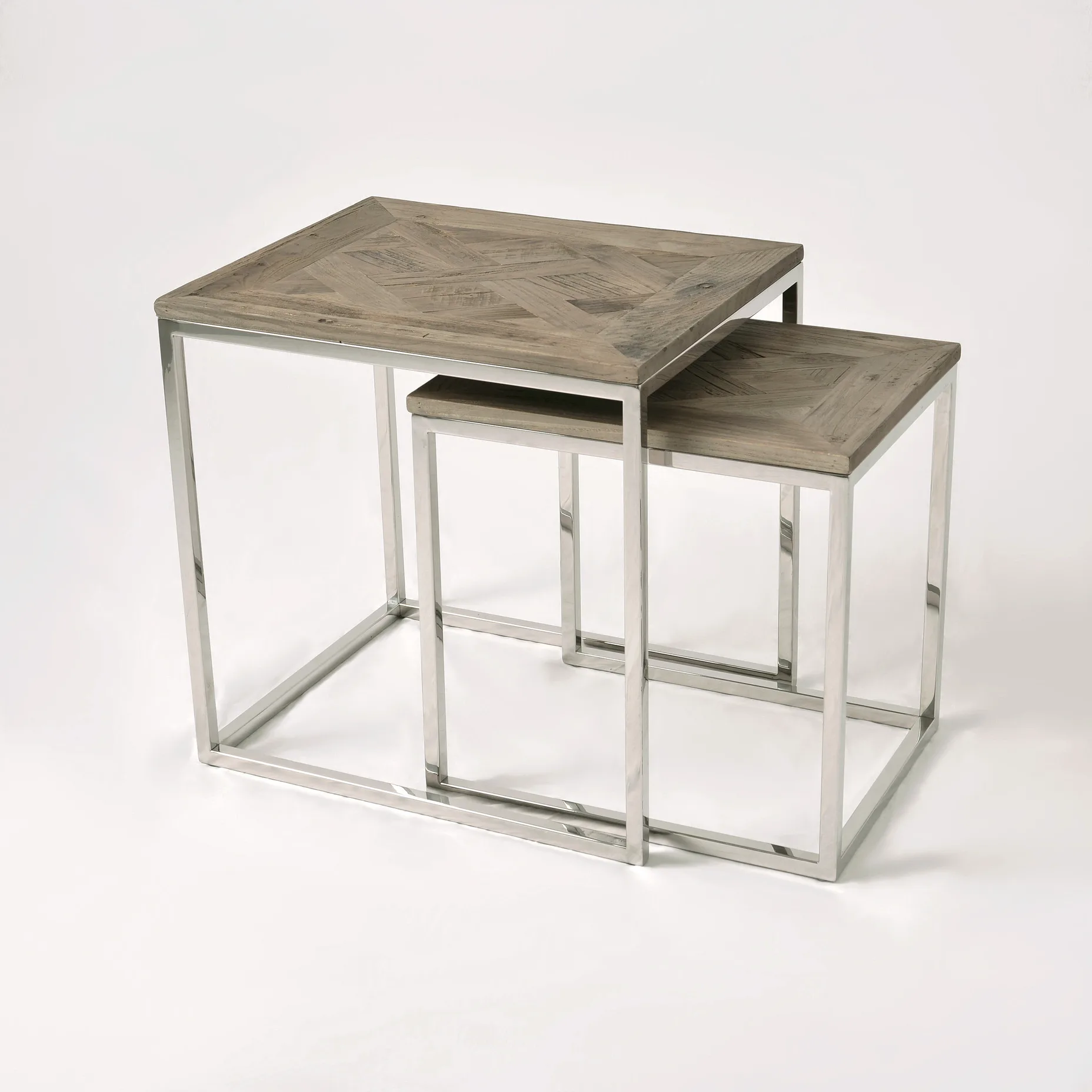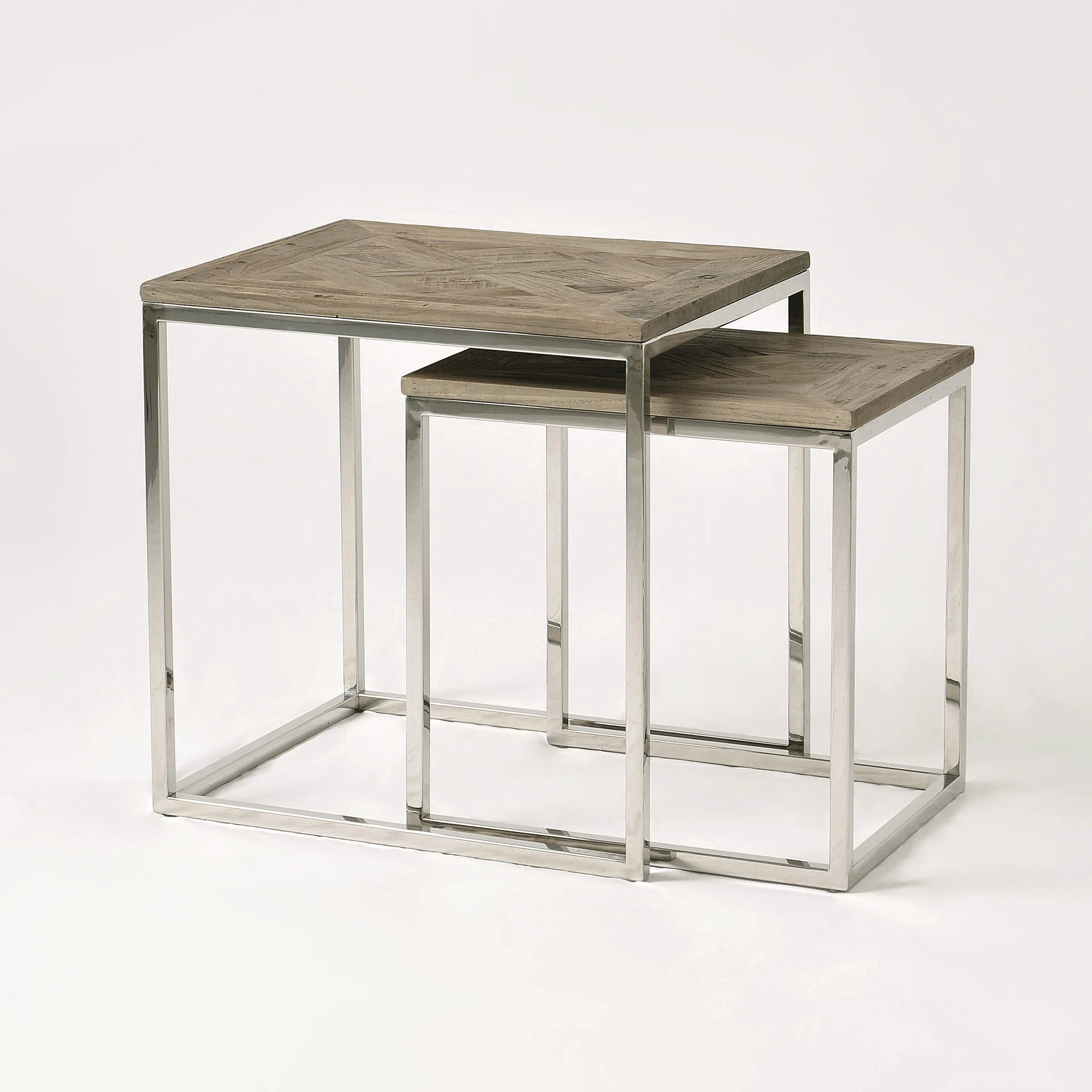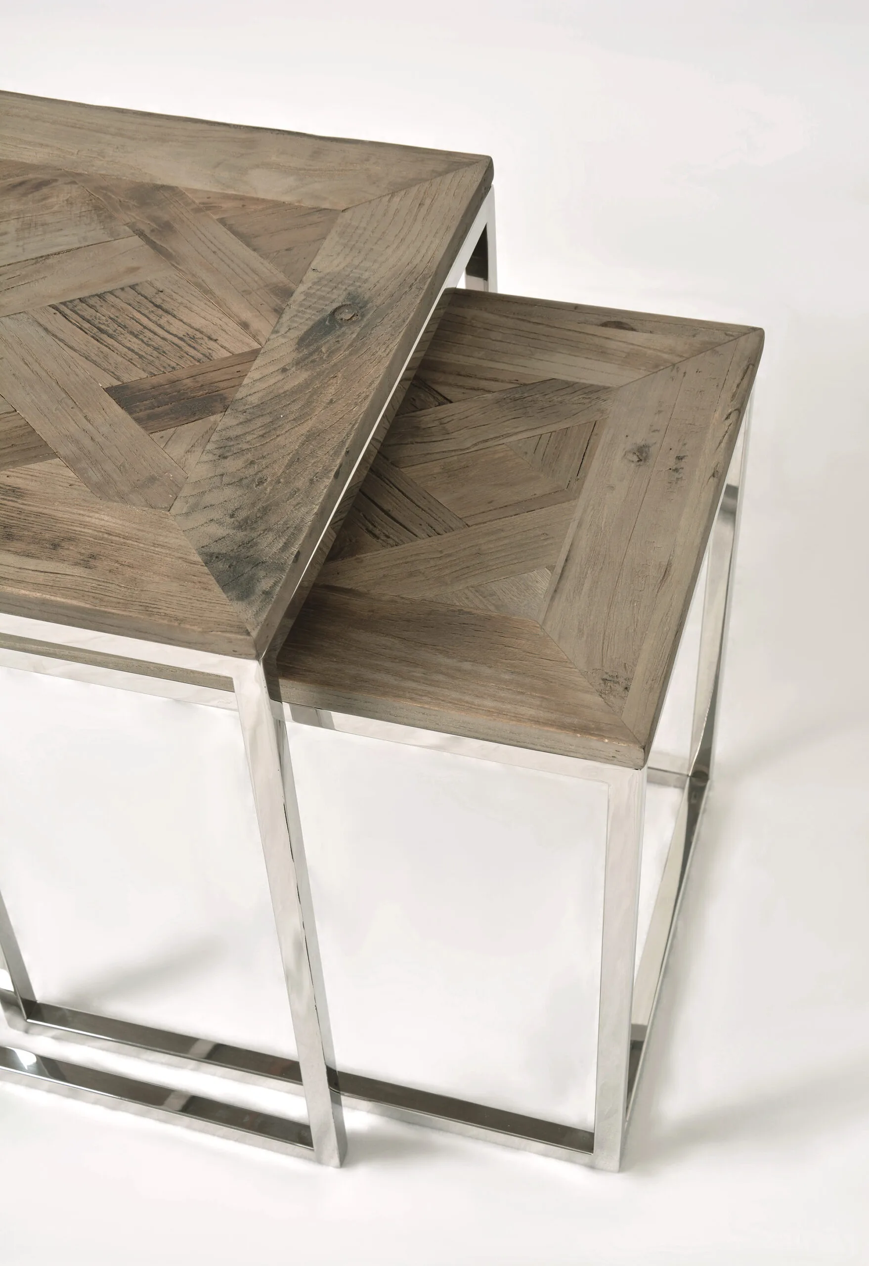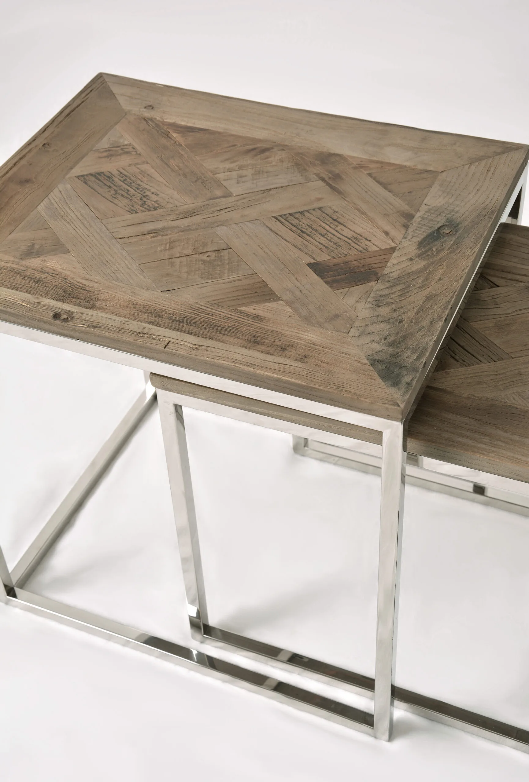 Glamour GL1538/39 diivanilaudade komplekt elutuppa. Need stiilsed lauad toovad teie elutuppa kaasaegse ja elegantse ilme. Lauaplaadid on valmistatud harjatud taaskasutatud puidust, millel on tume, naturaalne puidutoon koos valgendusega. Pealmine osa on kaunistatud kalasabamustriga, mis lisab lauale erilise võlu. Roostevabast terasest jalad annavad lauale vastupidavuse ja kaasaegse hõngu.