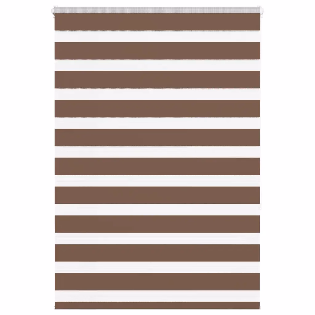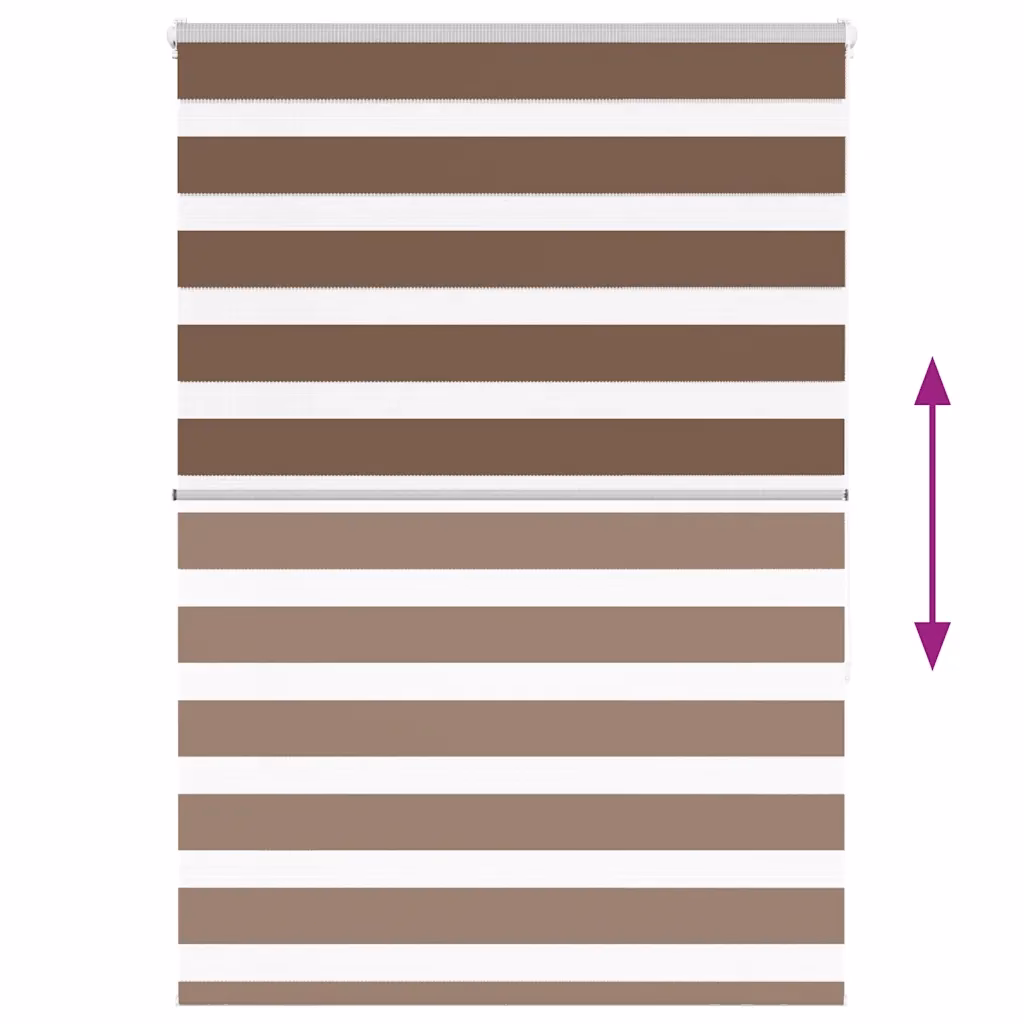 See pruun sebra ruloo mõõdus 105 x 150 cm ühendab dekoratiivse triibulise välimuse ja praktilise valguse reguleerimise. Kahekihiline kangas vahelduvate läbipaistvate ja läbipaistmatute ribadega võimaldab luua ruumis kas pehme päevavalguse või peaaegu täieliku varjutuse.