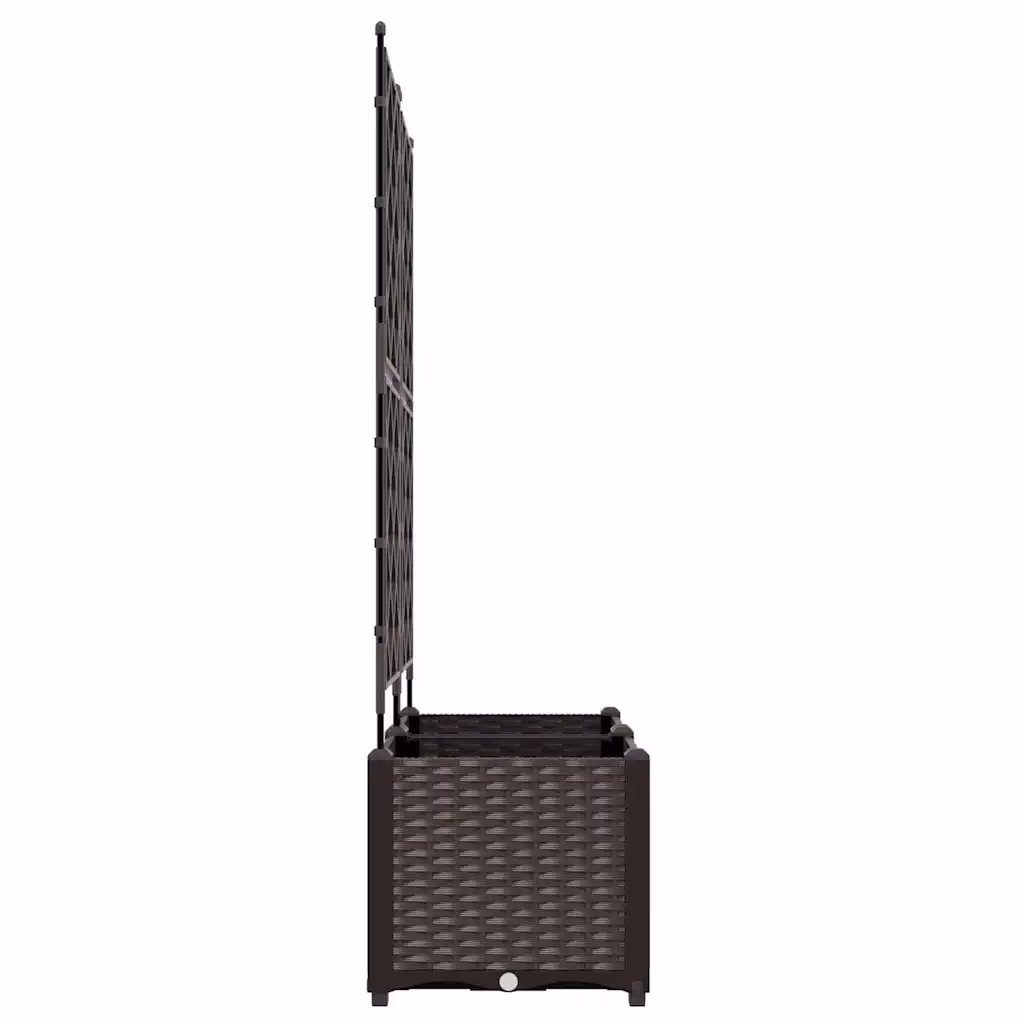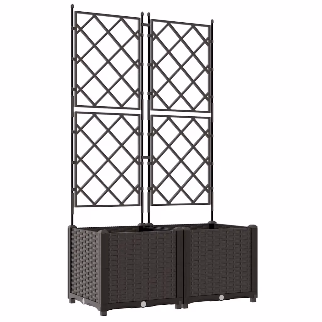 See pruuni terasest istutuskastide komplekt trellisega sobib hästi ronitaimede, lillede ja dekoratiivsete lehttaimede kasvatamiseks rõdul, terrassil või aias. Kõrge trellisega konstruktsioon aitab luua rohelise seina, mis lisab nii varju kui ka privaatsust, samal ajal kui terasest raam tagab stabiilsuse ja vastupidavuse välitingimustes.