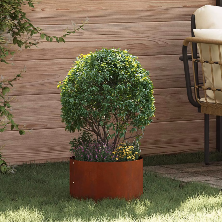 Pruunist terasest istutusrõngas aitab luua aias selgeid piire ja korrastatud üldmuljet, raamides dekoratiivselt põõsaid, istikuid ja madalamaid taimi. Minimalistlik ümmargune kuju sobitub hästi nii modernse kui ka looduslähedase aiakujundusega, tuues taimede loomuliku ilu selgelt esile. Vastupidav terasmaterjal on mõeldud kasutamiseks välitingimustes, pakkudes kestvat lahendust eri aastaaegadel.