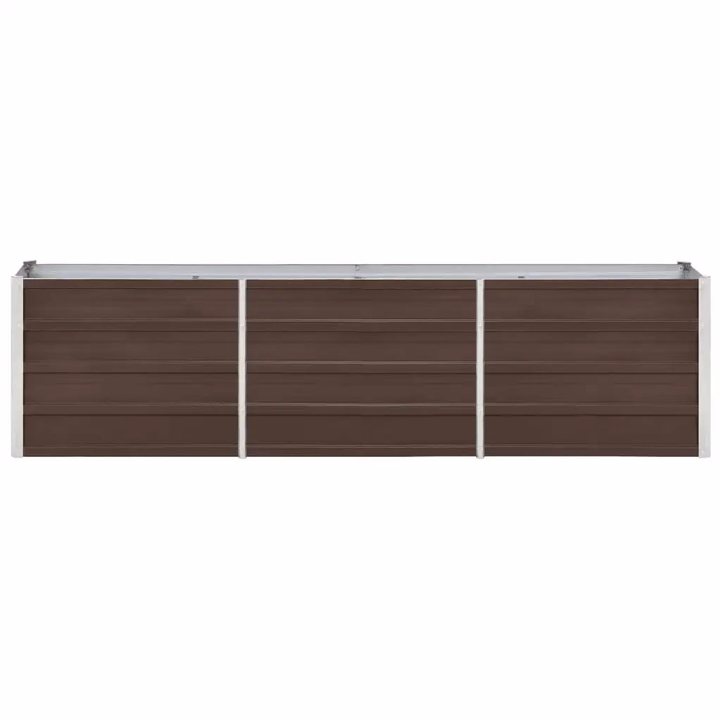 Kui soovite oma aias selgelt piiritletud ja hooldatavat istutusala, on see pruun tsingitud terasest taimelava praktiline lahendus. Suur istutusruum, avatud põhi ja ilmastikukindel materjal teevad sellest sobiva valiku nii lillede kui ka söödavate taimede kasvatamiseks, aidates hoida aia korrastatuna ja taimed hästi hooldatuna.