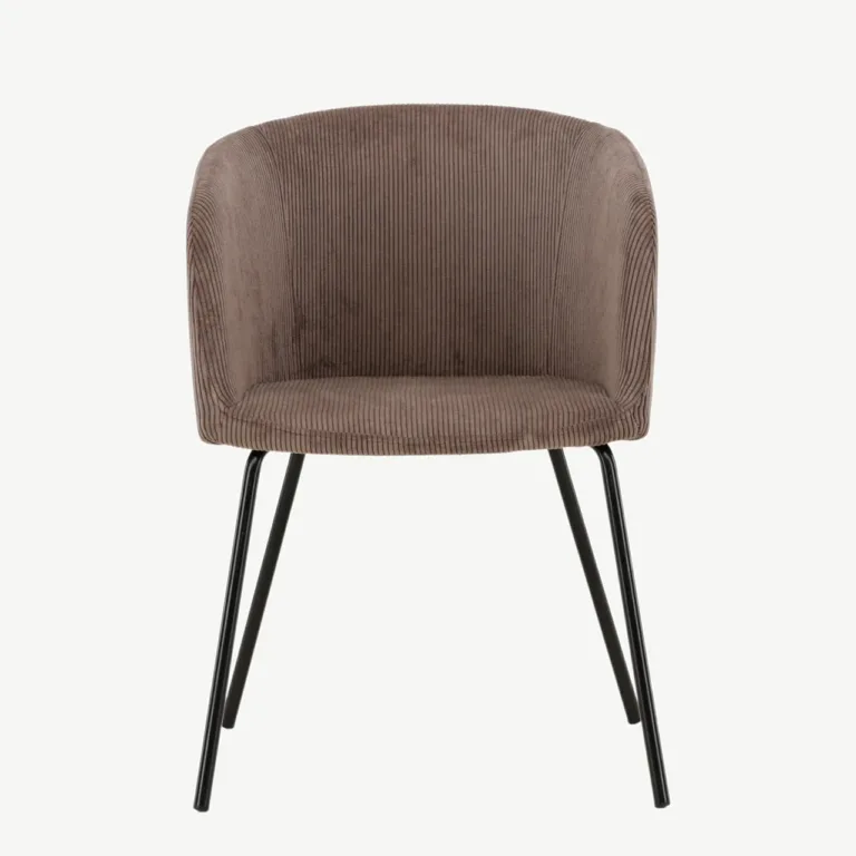 Tooli istumisosa ning seljatugi on kaetud pehme ja vastupidava 100% polüestrist soonilise kangaga (sametilaadne buklee), mis loob luksusliku välimuse ning mõnusa tunde iga istumiskorra juures. Elegantne pruun toon on ühtaegu ajatu ja praktiline – pruun sooniline söögitool sobitub suurepäraselt erinevate sisustusstiilidega.