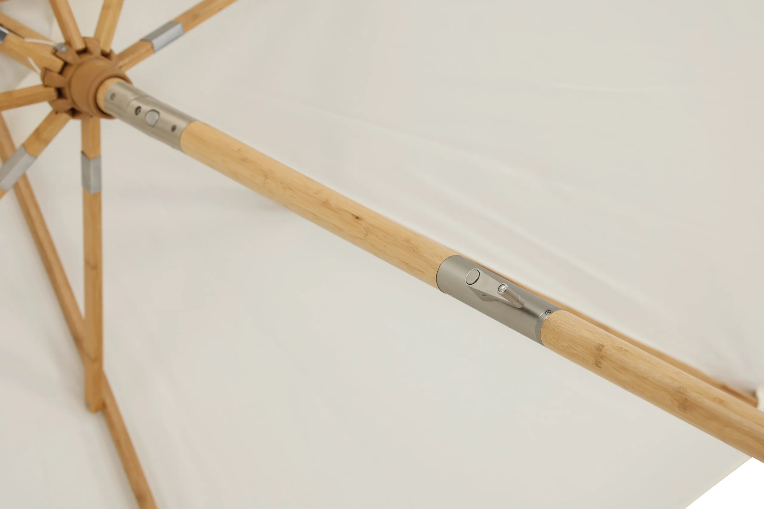See päikesevari on valmistatud vastupidavast puidust, mis tagab stabiilsuse ja pikaealisuse. Valge kangas on mustuse- ja veekindel, kuid samas hingav, et tagada optimaalne kaitse päikese eest. Lihtne voltimismehhanism võimaldab varju sujuvalt avada ja sulgeda, pakkudes paindlikkust vastavalt ilmastikuoludele ja isiklikele eelistustele.