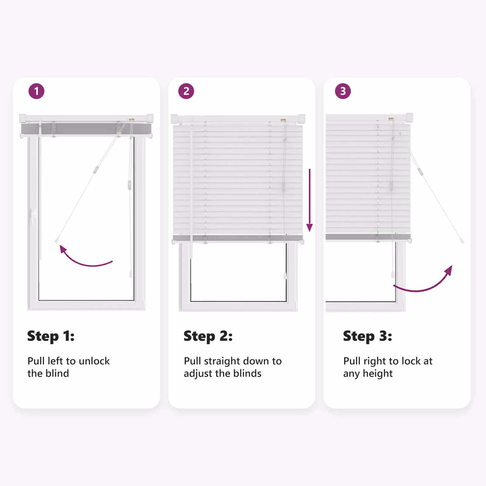 - Reguleeritav valguse juhtimine – pöörleva varre abil saate ribasid kallutada ja kontrollida, kui palju loomulikku valgust ruumi pääseb.