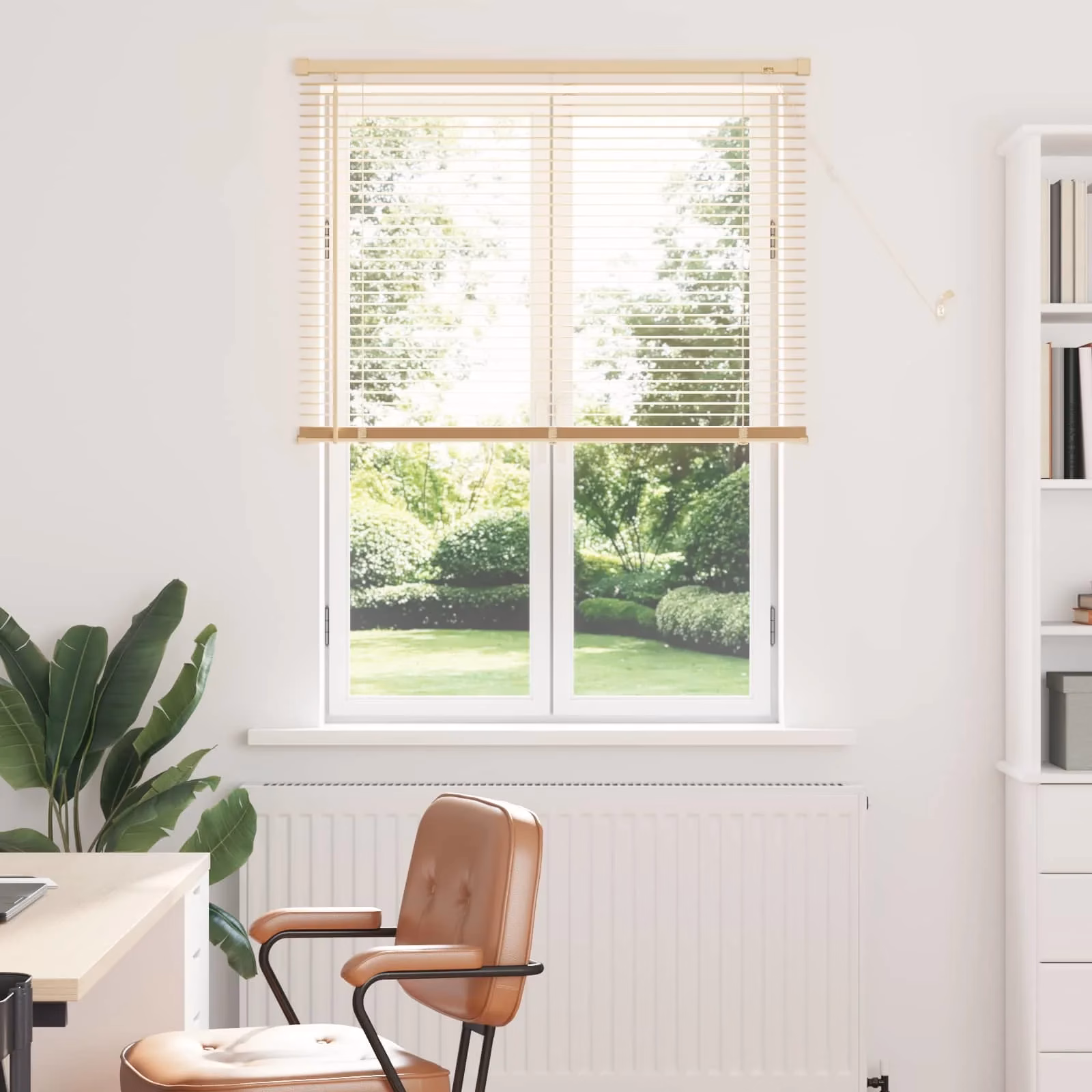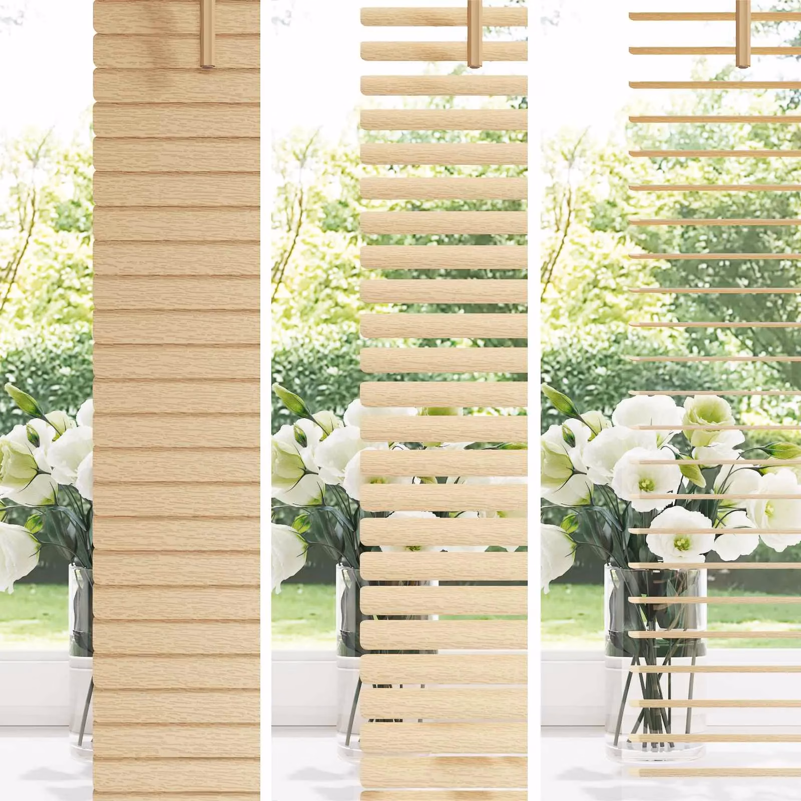 • Reguleeritav valgus ja privaatsus – pöördvarre abil saab lamellide asendit kiiresti muuta, et kas varjata vaadet või lasta rohkem valgust tuppa.