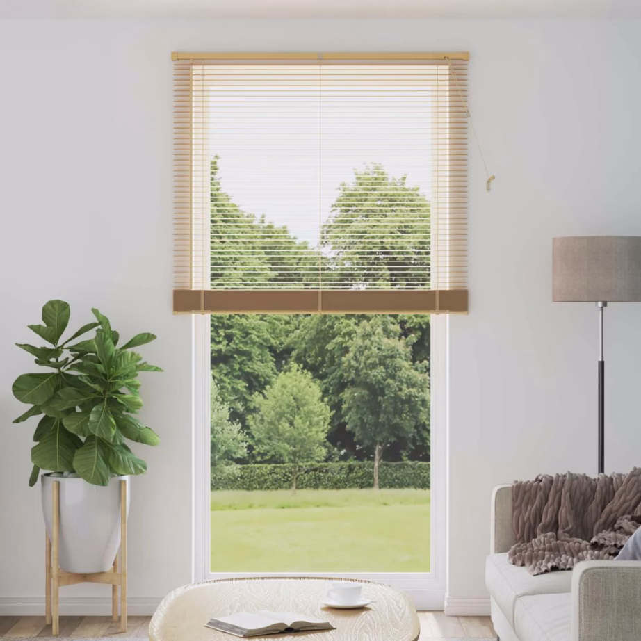 Privaatsuse ja valguse reguleerimine helepruuni veneetsia ruloo abil