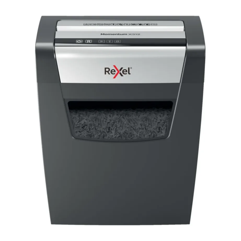 Rexel Momentum X312 on must-hall ristlõikega paberihävitaja, mis hävitab korraga kuni 12 lehte ning mahutab 23 liitrit paberitükke.