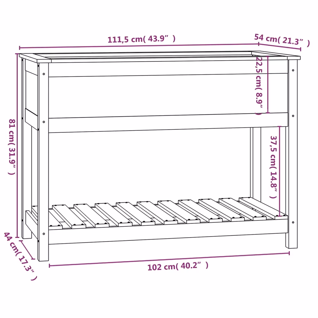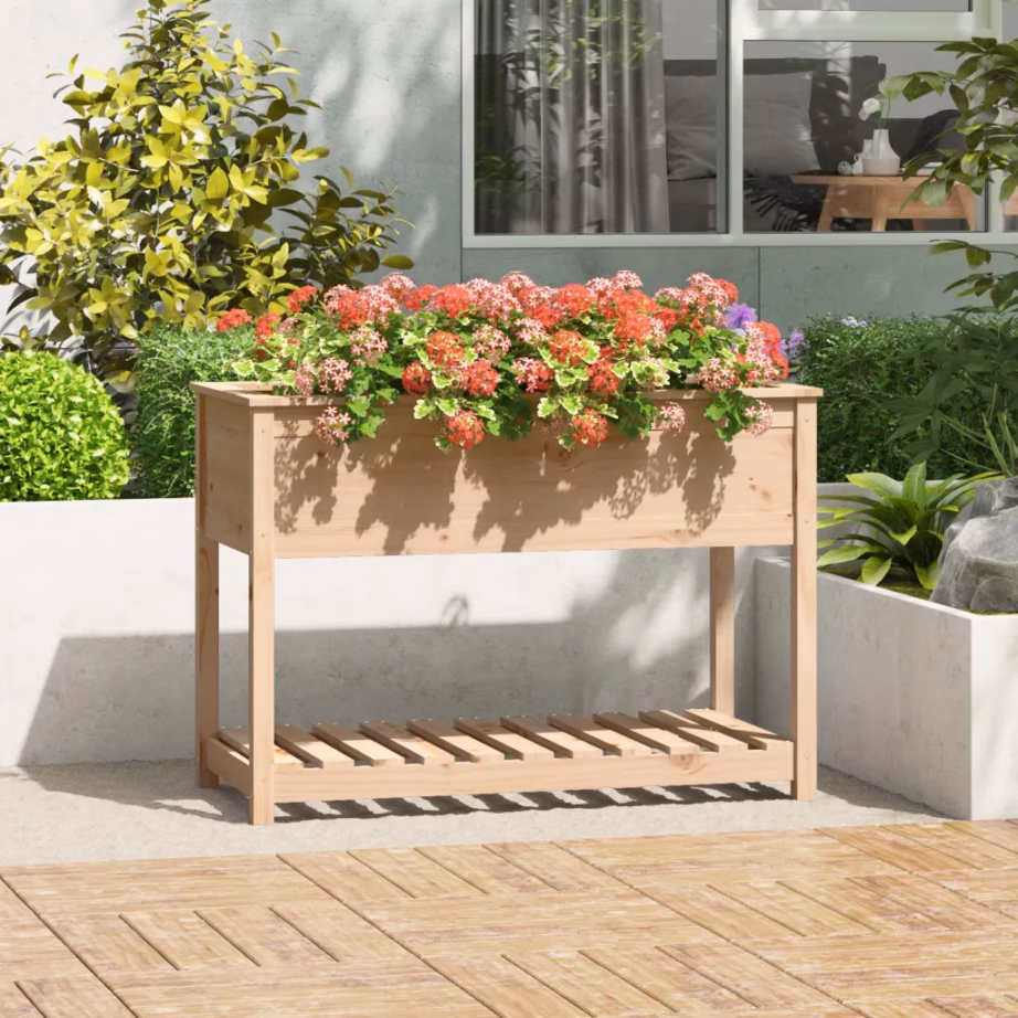 Kui soovid koondada oma taimed ühele ergonoomilisele ja praktilisele istutusalale, on see riiuliga taimekast hea lahendus. Sügav istutusosa, stabiilne männipuidust raam ja lisariiul annavad võimaluse hoida nii taimed kui ka töövahendid kompaktselt ühes kohas, sobitudes hästi nii väikestesse kui ka suurematesse väliruumidesse.