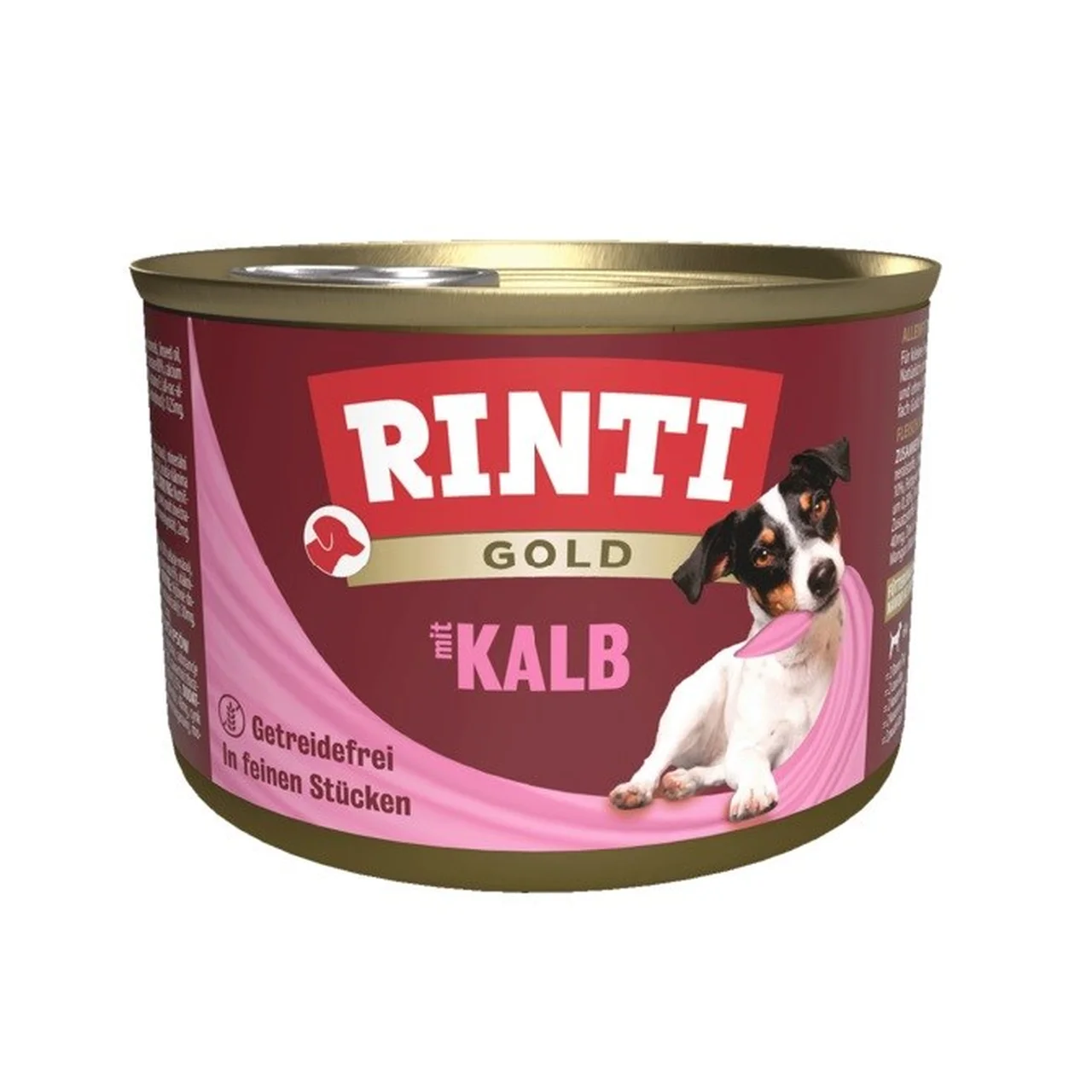 RINTI Gold Veal 185g on täisväärtuslik veiselihaga märgtoit, mis sobib kõigile täiskasvanud koertele ega sisalda teravilja, gluteeni ega kunstlikke lisandeid.