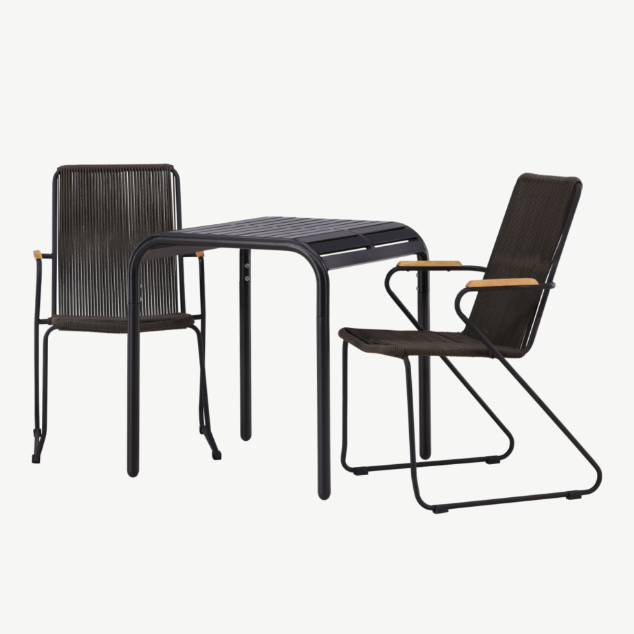 Tutvustame Venture Home’i Borneo sarja ristkülikukujulist aiakomplekti, mis on ideaalne rõdule, terrassile või väiksemasse aianurka. See must aiakomplekt kahe tooliga pakub ajatut Skandinaavia disaini, kombinatsioonis vastupidavuse ja mugavusega. Modernne ja funktsionaalne valik igasse põhjamaise kodu õueruumi!