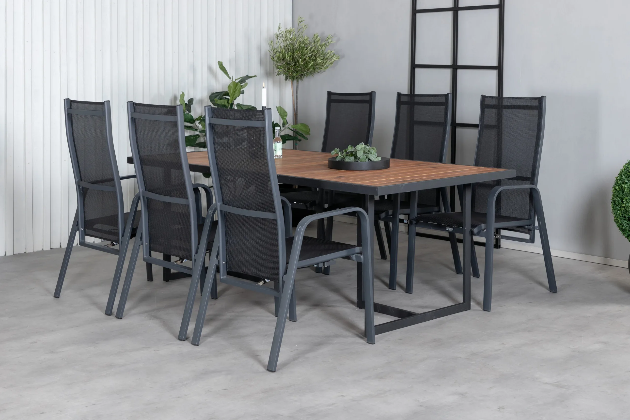 Khung aiamööbli komplekt ühendab endas modernse disaini ning maksimaalse mugavuse, pakkudes ideaalset lahendust suvisteks õhtusöökideks pere ja sõpradega. Komplekti kuulub mahukas ristkülikukujuline söögilaud naturaalsest akaatsiapuidust ning kuus reguleeritavat, kõrge seljatoega musta Copacabana aiatooli. Tugevad materjalid ja põhjamaisele maitsele sobiv stiil teevad sellest akaatsiapuidust aiamööbli komplektist silmapaistva keskme igale õueruumile – nii terrassile kui ka aeda.