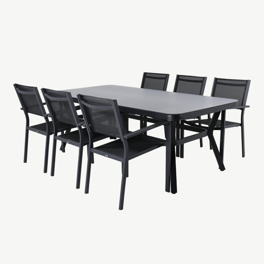 Tutvu Virya ristkülikukujulise musta aiamööbli komplektiga, mis ühendab endas funktsionaalsuse, vastupidavuse ja skandinaavialiku minimalistliku disaini. Komplekti kuulub avar Virya söögilaud ning kuus elegantset Copacabana mudeli virnastatavat tooli, mis sobivad suurepäraselt nii terrassile kui aeda.