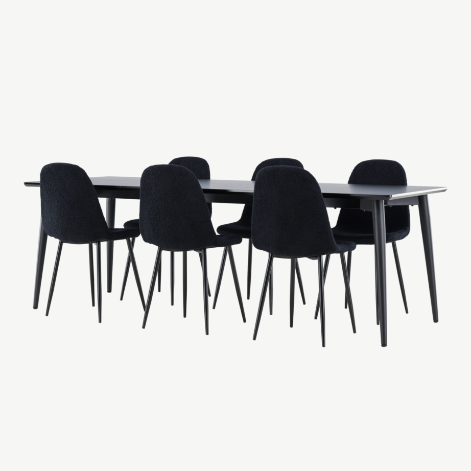 Avasta ideaalne valik, kus modernne elegants ja vastupidavus kohtuvad – see must söögilaua komplekt koosneb kvaliteetsest Ellis lauast ja kuuest Polar toolist. Komplekt sobib ühtviisi hästi nii avarasse söögituppa kui ka hubasele kööginurgale, luues stiilse ja kutsuva õhkkonna igaks eineks ning koosviibimiseks.