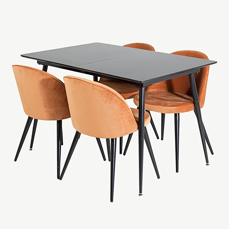Stiilne must söögilauakomplekt Silar roostekarva samettoolidega – kaasaegne valik sinu koju