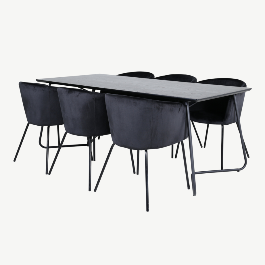 Petra must söögitoa komplekt toob stiilse ja mugava atmosfääri igasse interjööri. Komplekti kuulub kvaliteetne ristkülikukujuline söögilaud ja kuus pehme velvetkattega tooli Berit sarjast. Minimalistlik ning põhjamaine disain lisab ruumile nii elegantsi kui ka funktsionaalsust, sobitudes ideaalselt nii modernsesse kui klassikalisse interjööri.