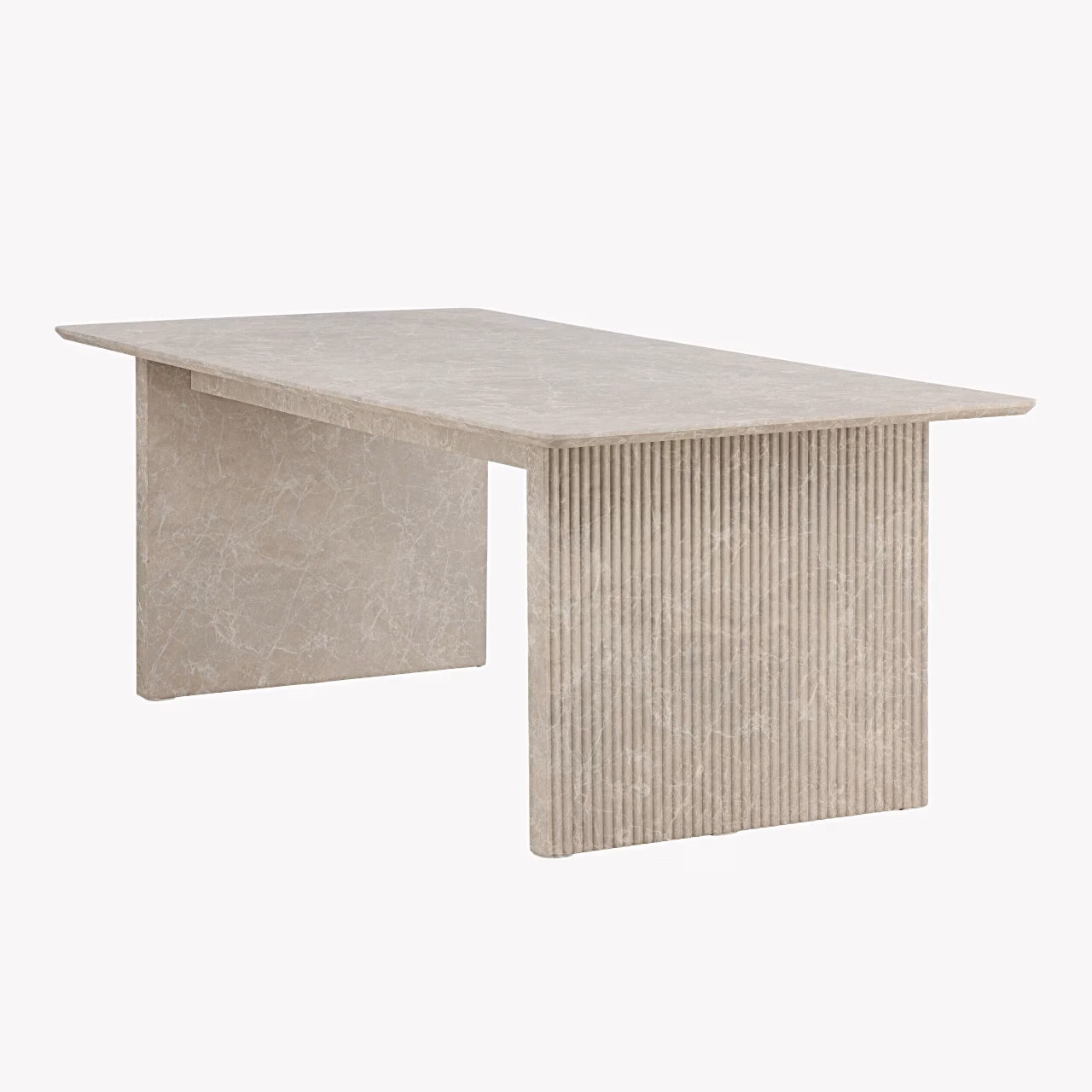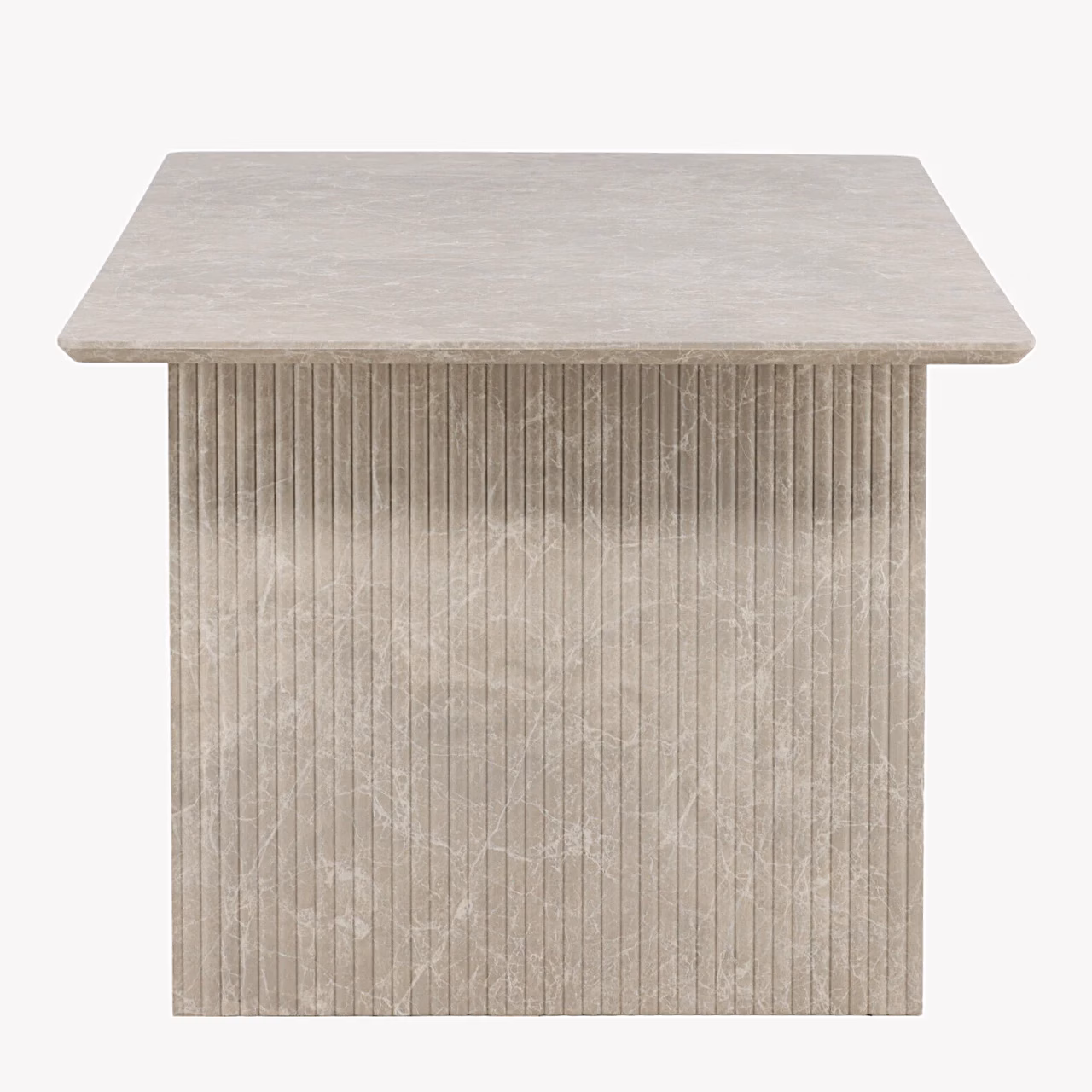 Vail ristkülikukujuline söögilaud on avar ja pilkupüüdev valik, mis toob Sinu söögituppa rahuliku, kuid samas luksusliku meeleolu. 200 x 100 cm lauaplaat pakub rohkelt ruumi nii igapäevasteks peresöökideks kui ka pidulikeks õhtusöökideks külalistega. Beež marmormustriga viimistlus katab nii lauaplaati kui jalgu, luues ühtse, modernse ja ajatu ilme, mis sobitub suurepäraselt põhjamaise sisekujundusega. Soonilise struktuuriga lauajalad lisavad vormile sügavust ja karakterit, tekitades kauni kontrasti sileda lauapinnaga. Vail söögilaud muutub loomulikult ruumi keskpunktiks – kohaks, kuhu koguneda aastaid.