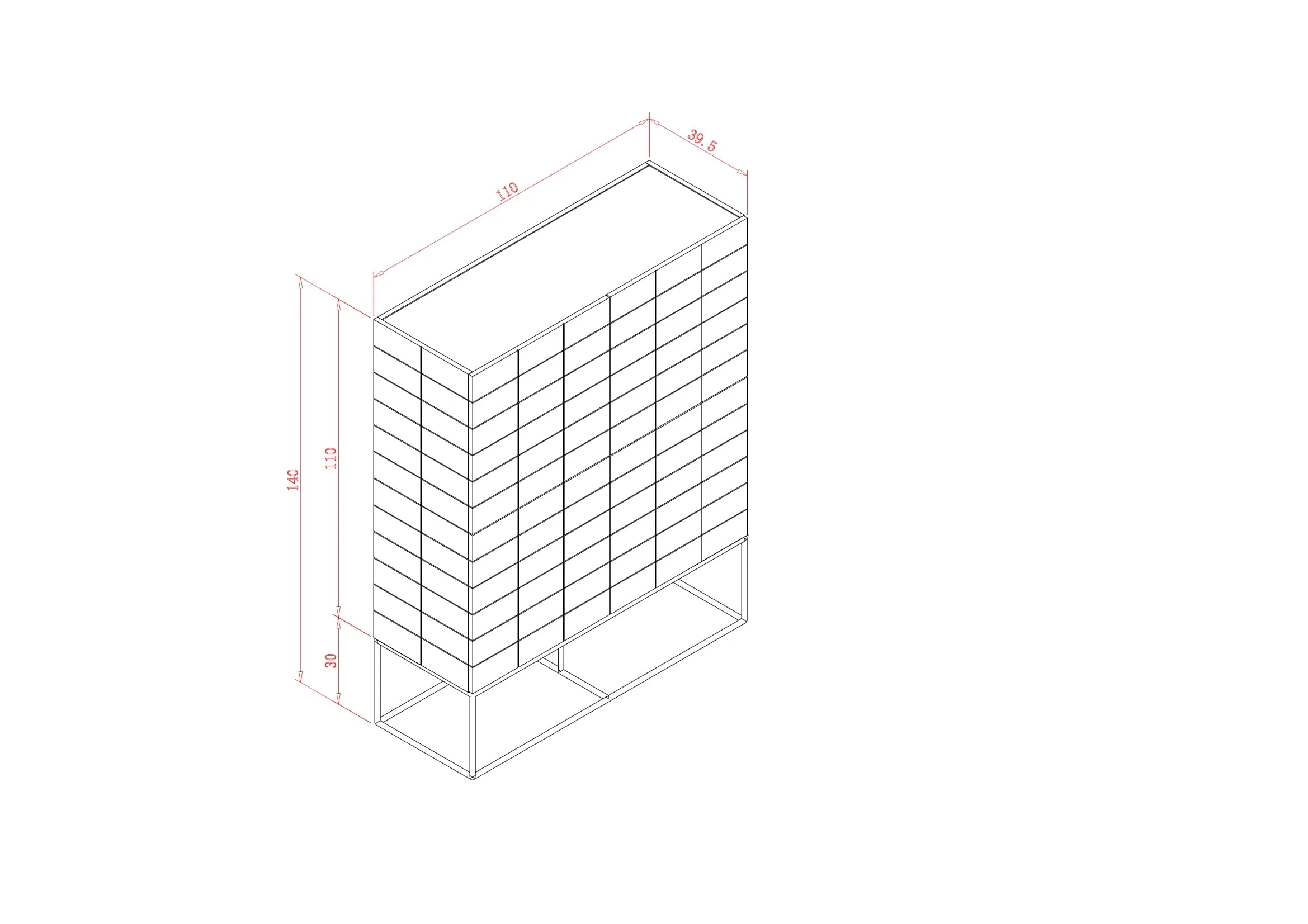 Mõõtmed: Laius 110 cm, sügavus 39,5 cm, kõrgus 140 cm.