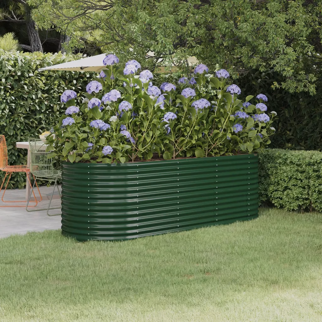 See roheline aia taimelava aitab luua korrastatud ja tõhusa istutusala sinu aeda, rõdule või verandale. Ovaalne istutuskast on piisavalt sügav ja lai, et kasvatada erinevaid lilli, ürte ja juurvilju, samal ajal kui galvaniseeritud terasest konstruktsioon tagab vastupidavuse välitingimustes.