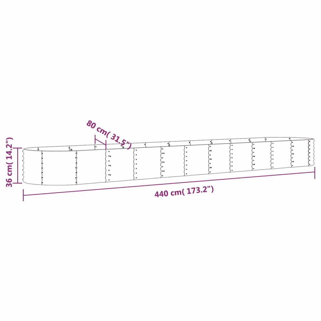 See roheline ovaalne aia taimelava ühendab suure istutusruumi ja vastupidava metallkonstruktsiooni, mis sobib pikaajaliseks kasutamiseks välitingimustes. Pulbervärvitud galvaniseeritud teras vähendab hooldusvajadust ning aitab taimelaval kaua kena välja näha. Kui soovid luua selge ja korrastatud istutusala lillede, ürtide või köögiviljade jaoks, on see mahukas metallist taimelava praktiline ja funktsionaalne lahendus.