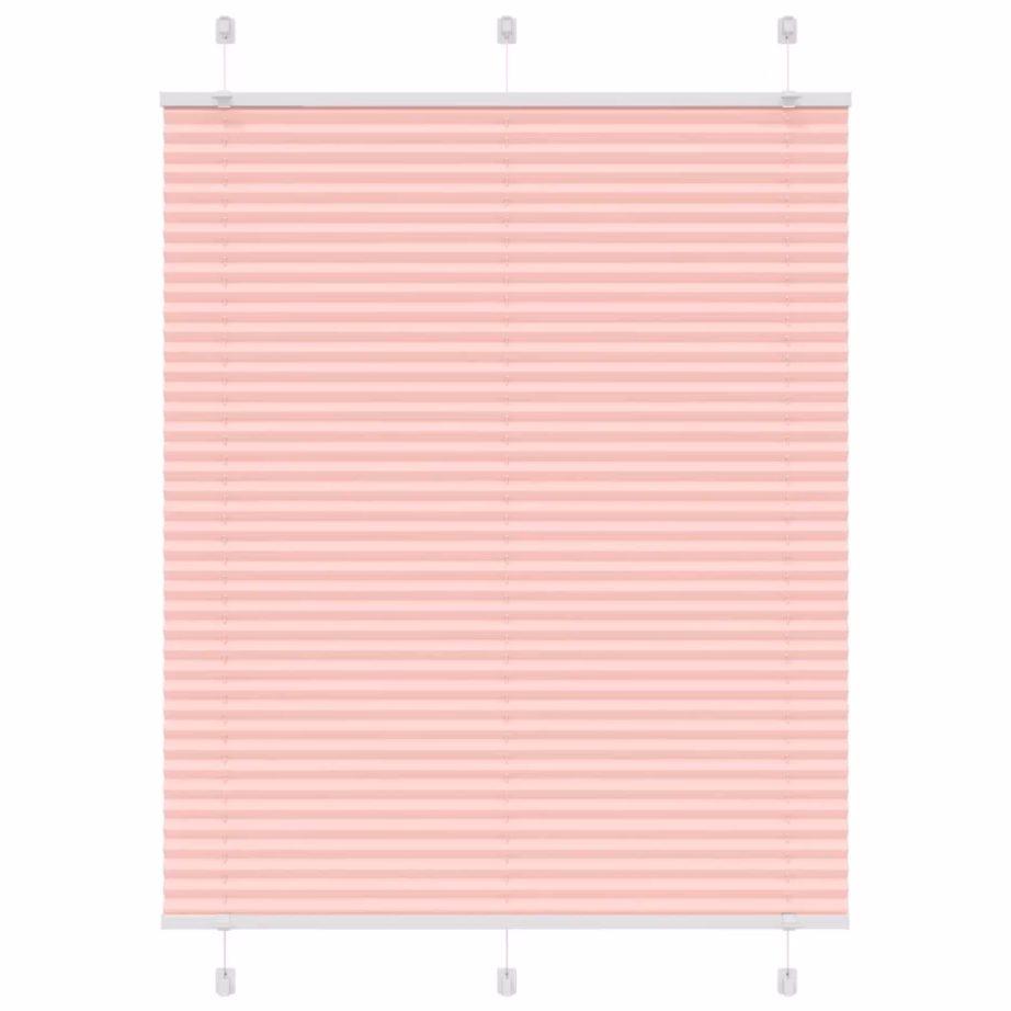 Roosa plisseeritud ruloo privaatsuse ja päikesesära vähendamiseks