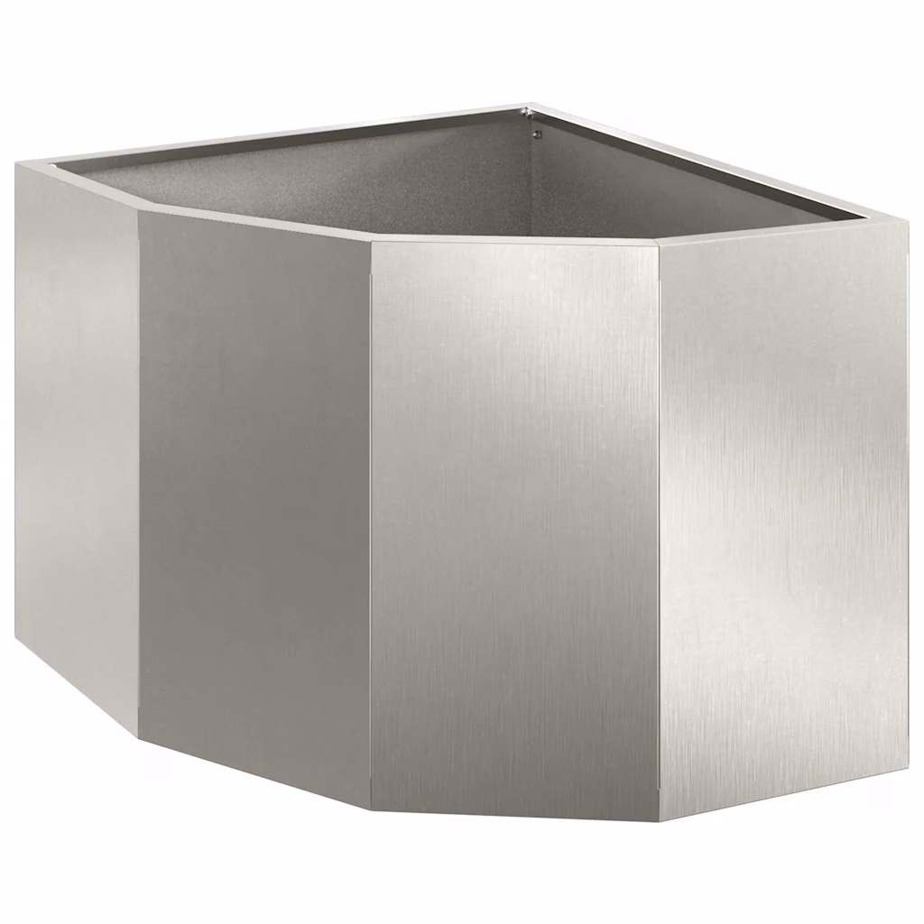 Roostevabast terasest nurgapott aitab maksimaalselt ära kasutada välistingimustes olevaid nurki, kus tavalised istutuskastid hästi ei sobitu. Hõbedane pind ja puhas joonis loovad modernse ilme ning pakuvad piisavalt ruumi taimede istutamiseks aias, terrassil või rõdul.