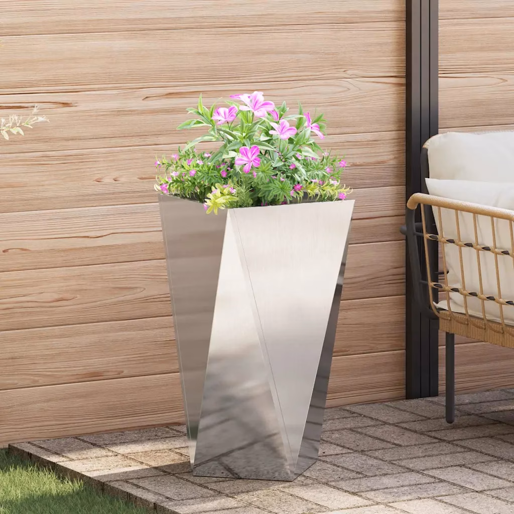 See kõrge roostevabast terasest taimekast aitab tuua rohelust ja struktuuri sinu aeda, terrassile või sissepääsu alale. Hõbedane pind ja geomeetriline disain loovad modernse ilme, samas kui vastupidav konstruktsioon tagab, et istutuskast sobib pikaajaliseks välikasutuseks.