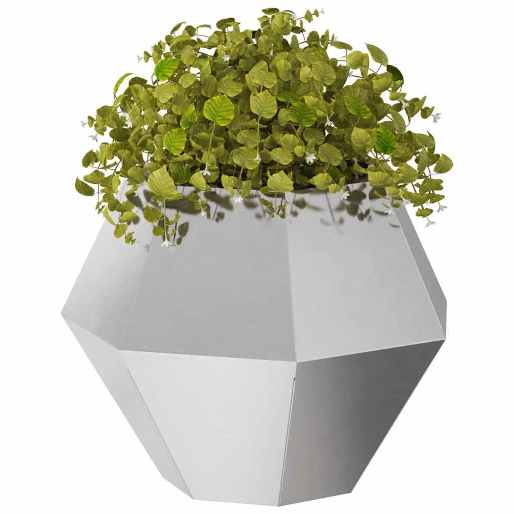 Vali see hõbedane roostevabast terasest taimekast, kui otsid ilmastikukindlat ja kaasaegse välimusega lahendust rõdule, terrassile või maja sissepääsu juurde. Kompaktsed, kuid avarad mõõtmed sobivad mitmesugustele taimedele ning mitmetahuline vorm lisab väliruumile arhitektuurset aktsenti, ilma et hooldusvajadus oleks suur.