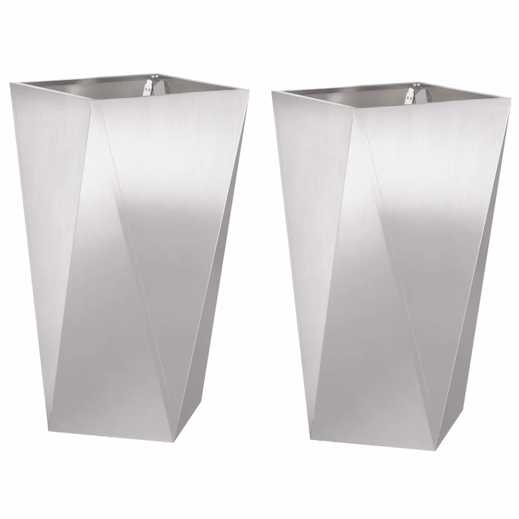• 2 hõbedast roostevabast terasest taimekasti, mõõtudega 40 x 40 x 75 cm (pikkus x laius x kõrgus)