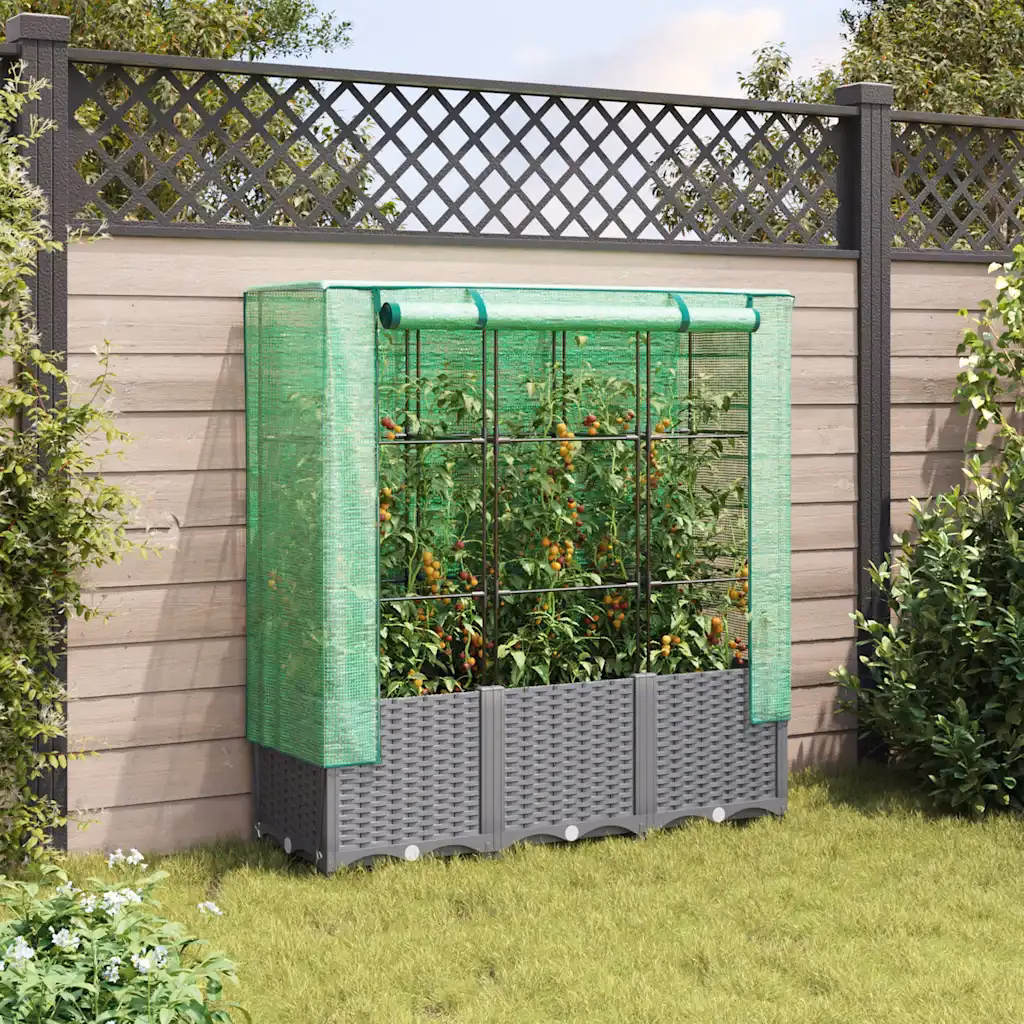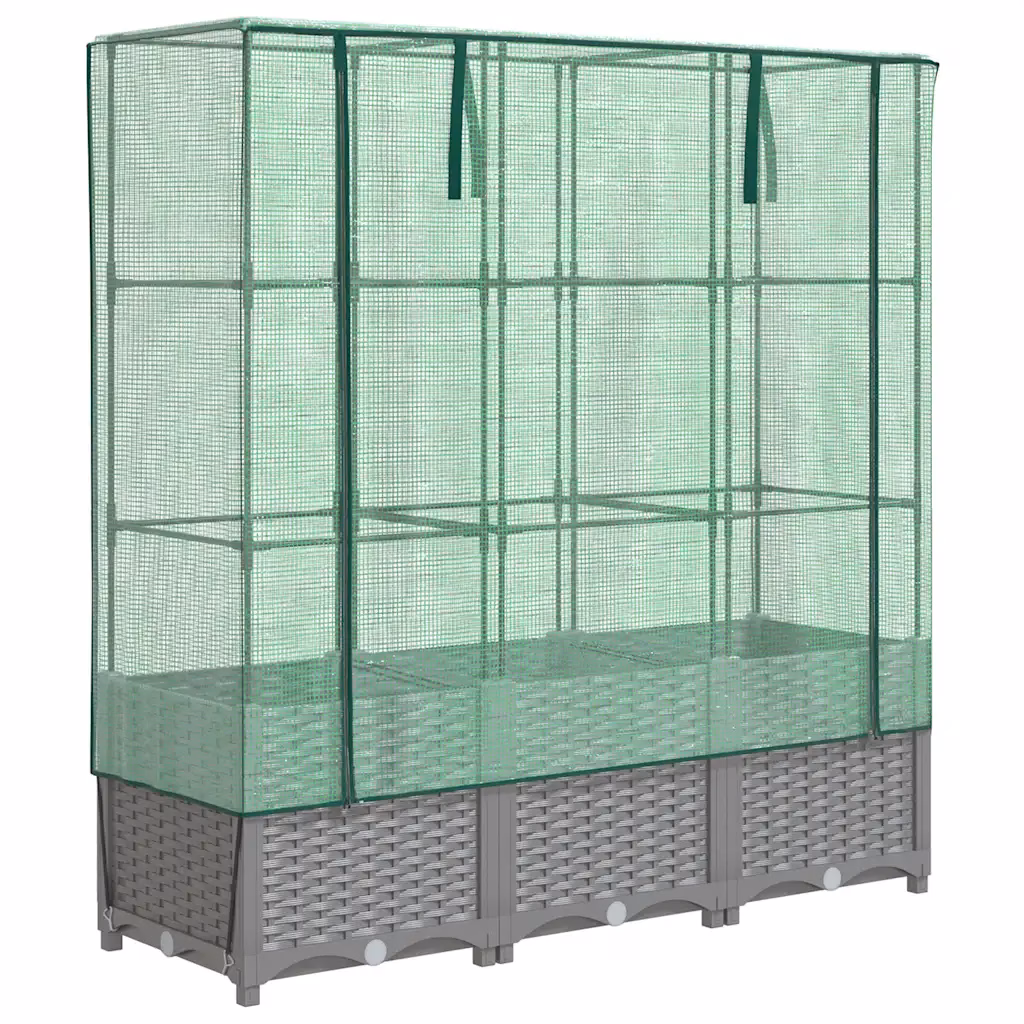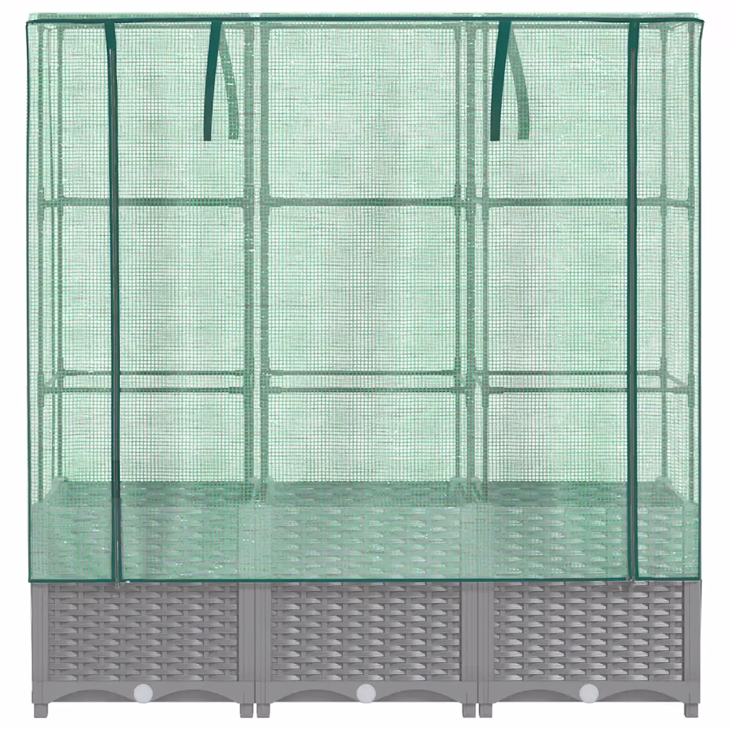 See helehall rotangiimitatsiooniga kõrgendatud taimekast loob kompaktse ja kaitstud kasvuala köögiviljadele, maitsetaimedele ja lilledele. Vettpidav polüetüleenist kasvuhoonekate aitab kaitsta taimi äärmuslike temperatuuride, putukate, lindude ja väikeloomade eest, samas kui rauast tugiraam toetab kõrgemaks kasvavaid ja ronivaid taimi.
