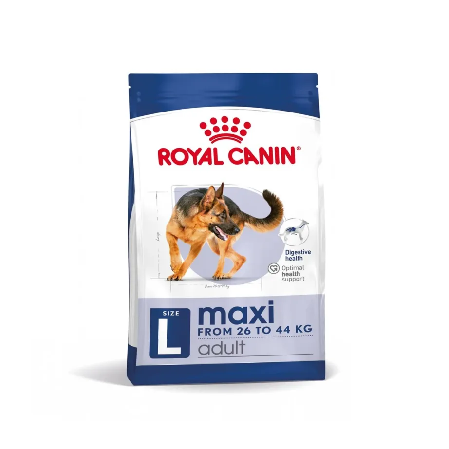 Royal Canin Maxi Adult kuivtoit on spetsiaalselt välja töötatud suurtele täiskasvanud koertele, kelle kaal jääb vahemikku 25–45 kg ja kes on vanuses 15 kuud kuni 5 aastat. Toit toetab korralikku seedimist ning aitab hoida liigeste ja kogu organismi üldist tervist. Selle tasakaalustatud koostis, kvaliteetsed valgud ning seedimist soodustavad kiudained ja rasvad vastavad just suurte tõugude vajadustele. Toode kuulub Royal Canin Size Health Nutrition sarja ning ei sisalda kunstlikke värvaineid ega säilitusaineid.