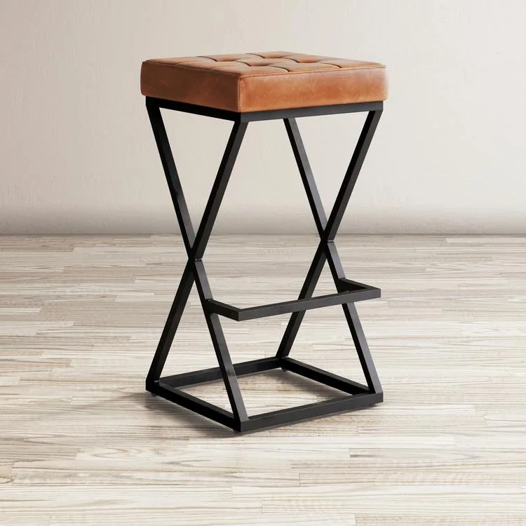 Avola AV1730-192S baaritool söögituppa. See tool on osa Avola kollektsioonist, tuues teie ruumi industriaalset stiili ja elegantsi. Tooli iste on kaetud naturaalse sadulavärvi nahaga, mis on kaunistatud tepitud mustriga, pakkudes nii visuaalset kui ka füüsilist mugavust. Mustad metallist jalad lisavad toolile vastupidavust ja modernset ilmet, samal ajal kui ruudukujuline alus ja X-kujulised küljed pakuvad stabiilsust ja unikaalset disaini.