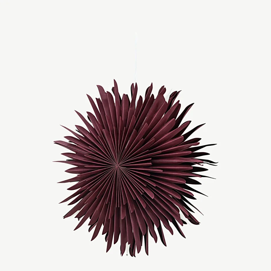 Säleni tumepunane paberist rippvalgusti toob interjööri põhjamaist soojust ja efektset stiili. Omanäoline tähekujuline kuppel loob meeldivalt hubase meeleolu nii sügiseses kodus kui ka jõulupühade ajal. Tänu 60 cm läbimõõdule on see lamp pilkupüüdev valik elutuppa, söögituppa või magamistuppa – eriti kaunina mõjub ta aknalaual või ruumi keskpunktis riputatuna.