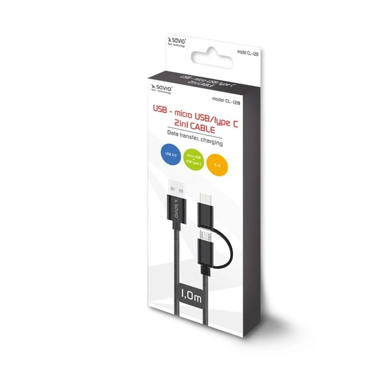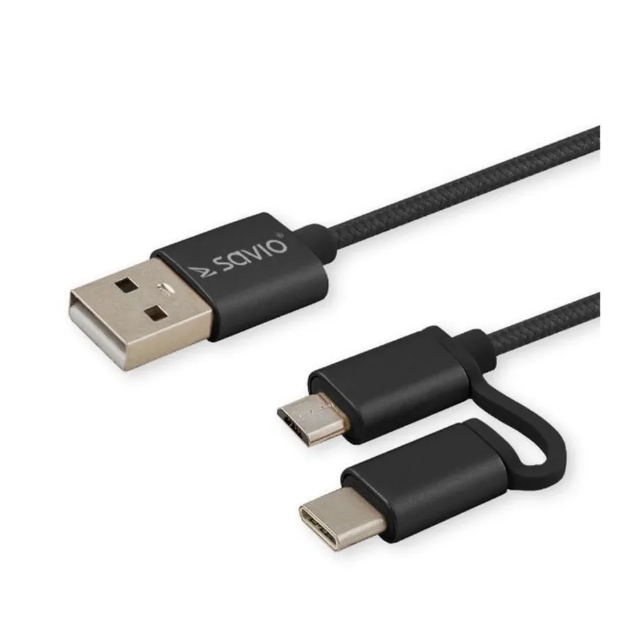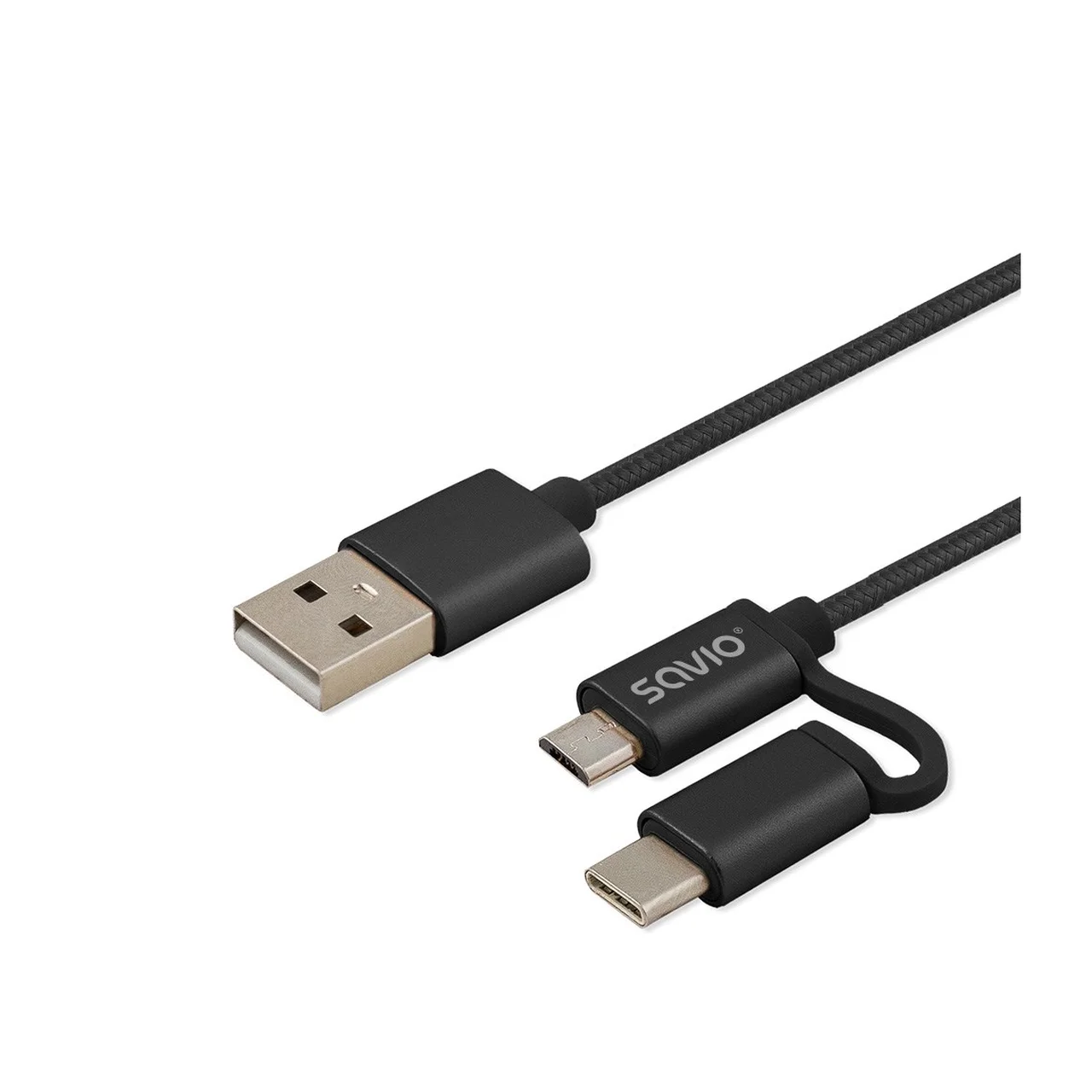 Savio CL-128 1 m must USB 2.0 USB-A – USB-C/Micro-USB laadimis- ja andmesidekaabel, 2.1 A
