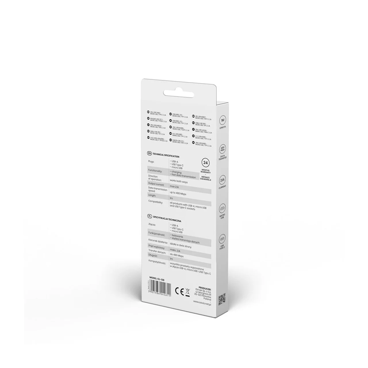 Savio CL-128 pakub mitmekülgset ja usaldusväärset lahendust olukordadeks, kus on vaja laadida või ühendada erinevaid seadmeid. See on universaalne 2-ühes kaabel, mis võimaldab ühendada nii USB-C kui ka Micro-USB seadmeid. Kaabel sobib hästi igapäevaseks kasutamiseks telefonide, tahvelarvutite ja muude seadmetega. Tänu Plug and Play funktsioonile on kasutamine lihtne – kaabel võimaldab laadimist ja andmete sünkroonimist ilma täiendava tarkvara või seadistamiseta.