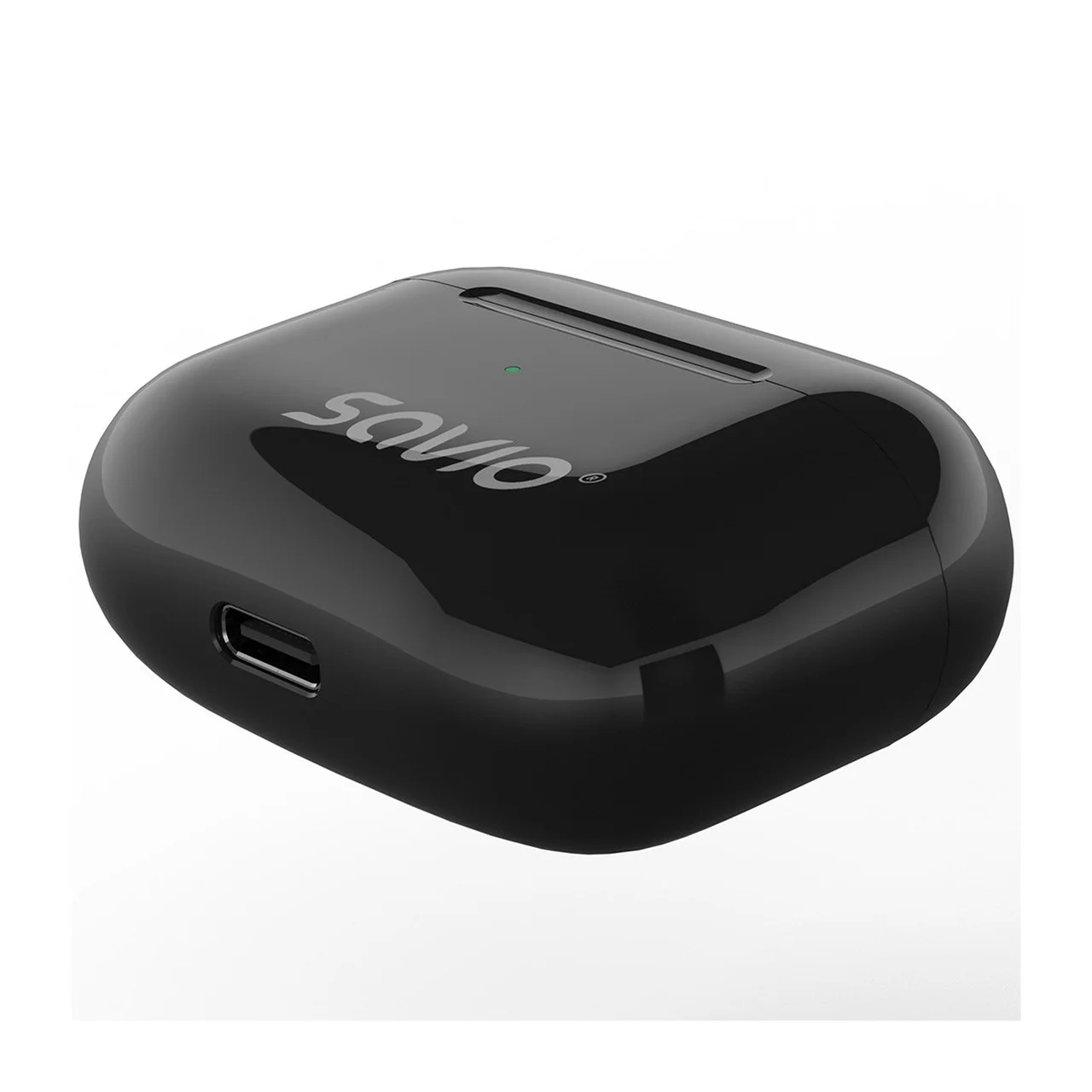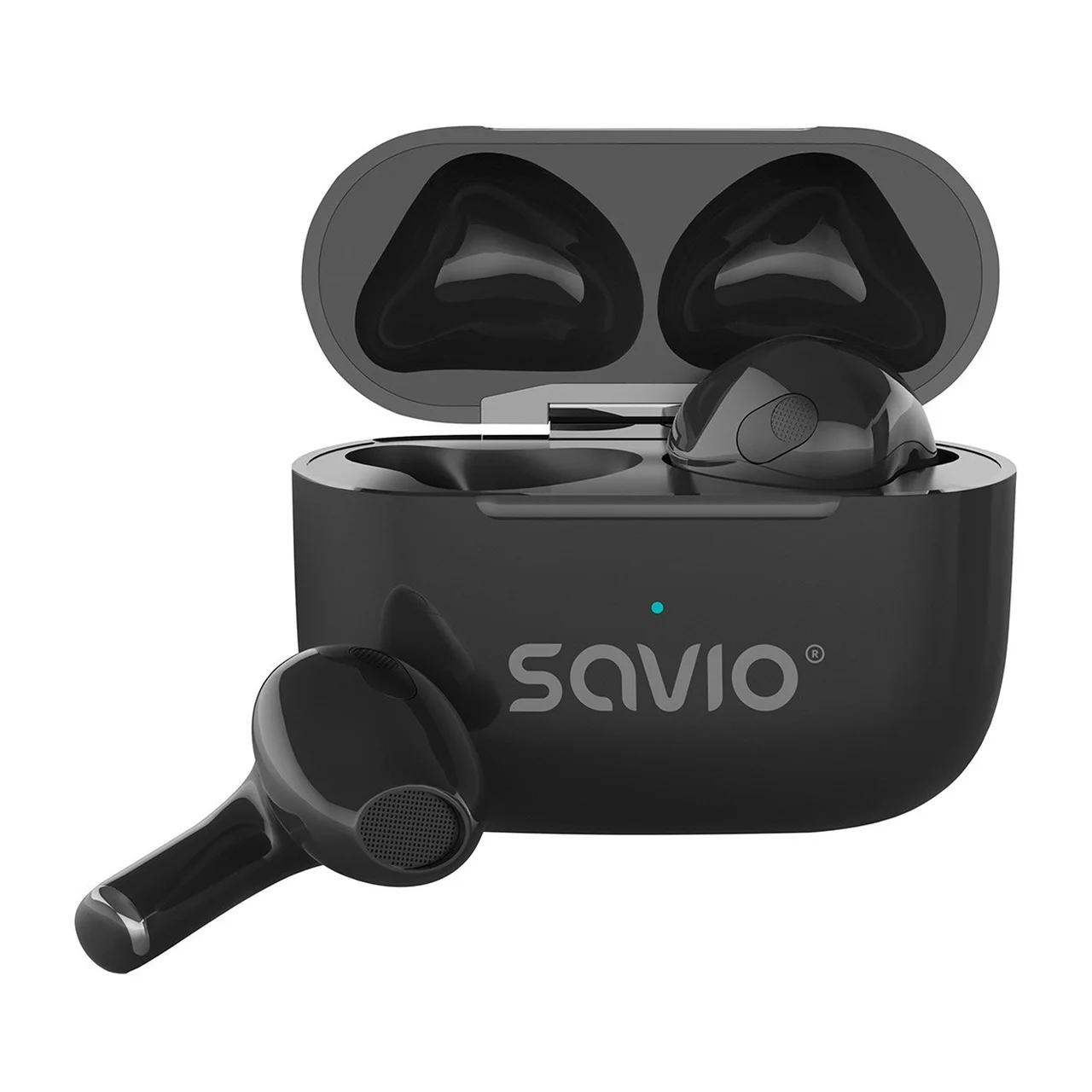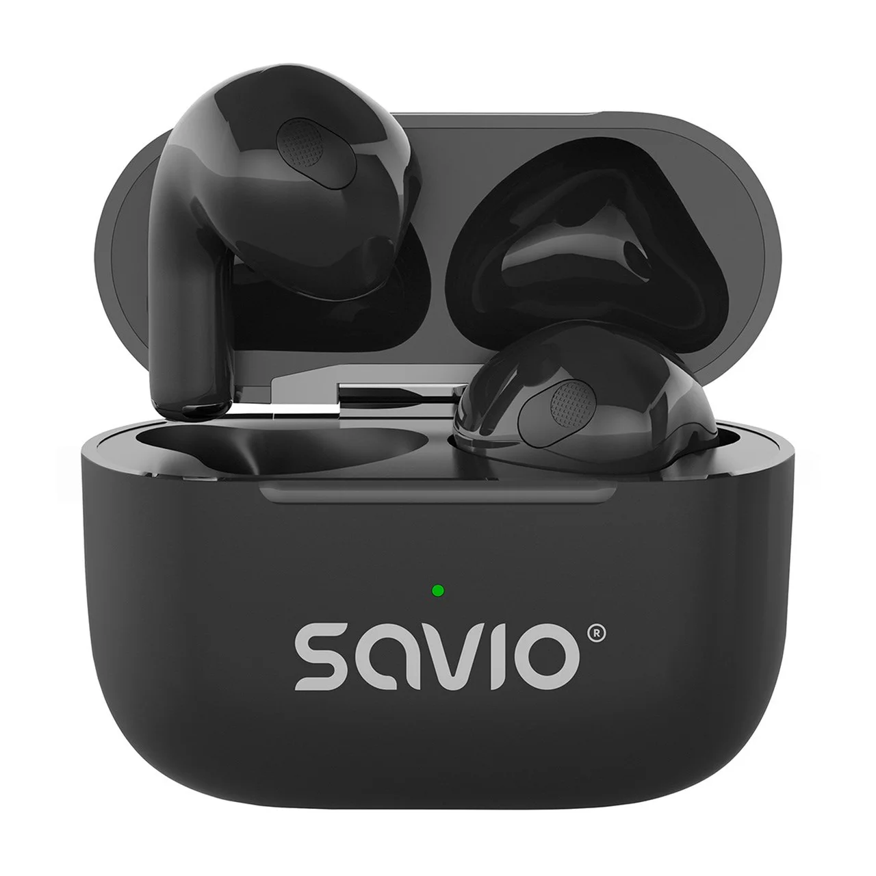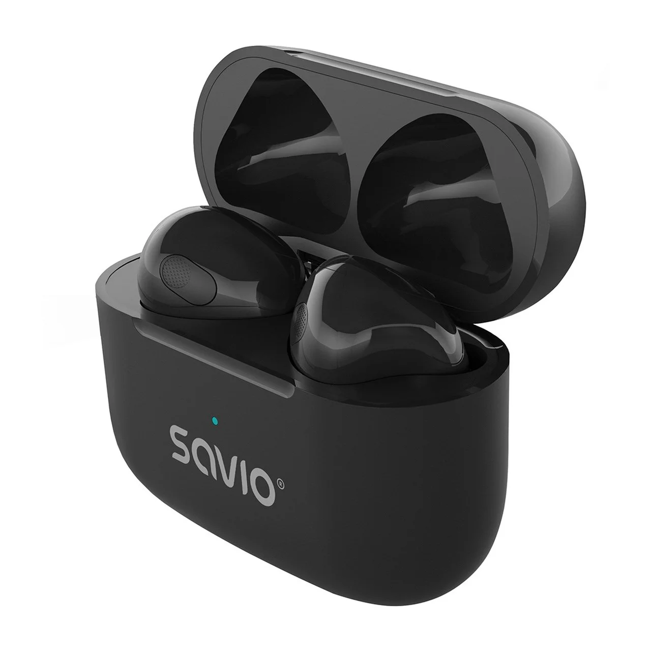 SAVIO TWS-02 PRO mustad IPX2 juhtmevabad in-ear kõrvaklapid Bluetooth 5.4, USB-C laadimiskarbiga, muusika ja igapäevase kasutuse jaoks
