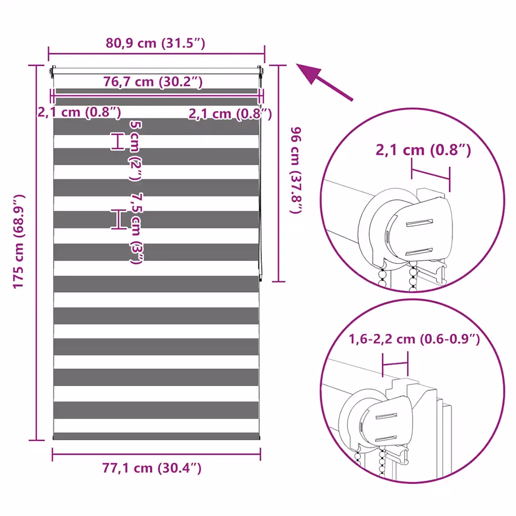 • Kahekihiline sebrakangas koos vahelduvate läbipaistvate ja läbipaistmatute ribadega loob iseloomuliku valguse filtreerimise efekti ja aitab hoida privaatsust.