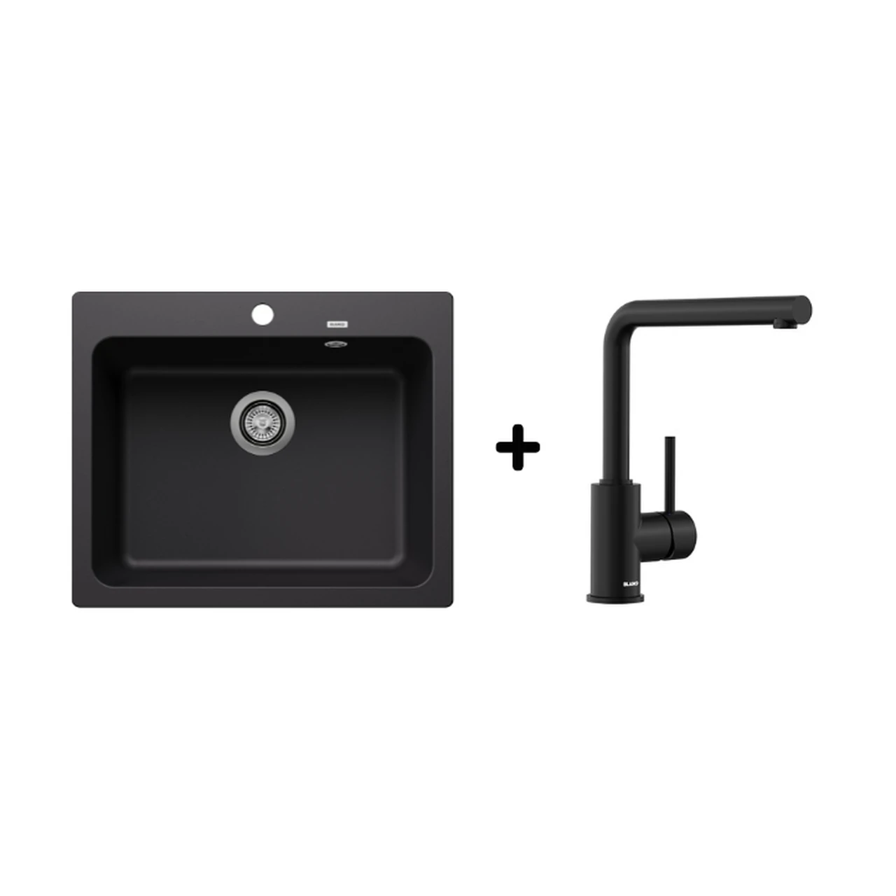 Silgranit köögivalamukomplekt must 60 cm kapile BLANCO Naya 6 Black + Mila Black Matt, 1-kausiline, pealt- ja altpaigaldus