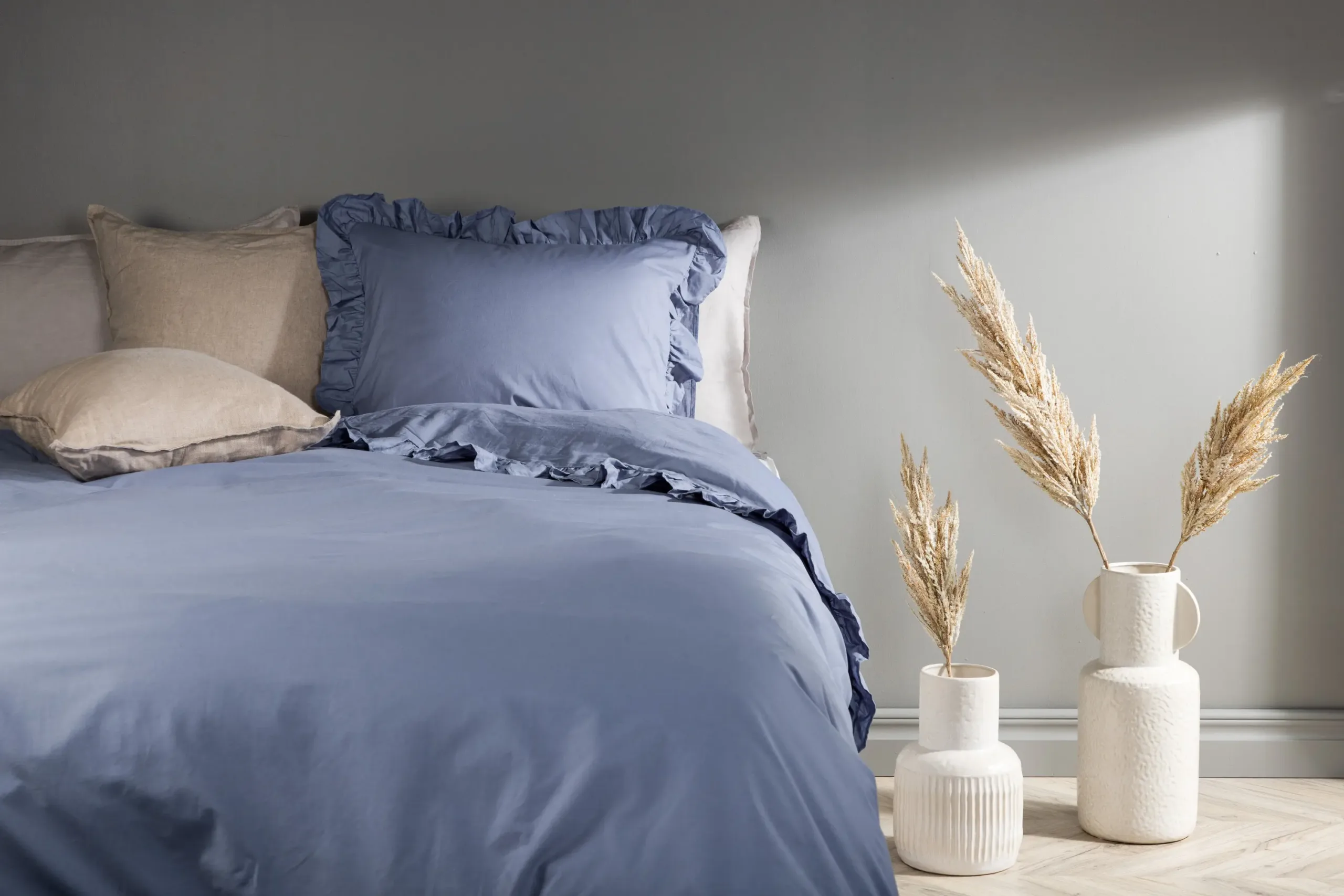 Sinine voodipesukomplekt volangidega Levi – lihtne viis tuua magamistuppa värskust, stiili ja mugavust!