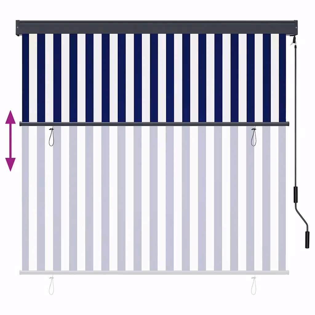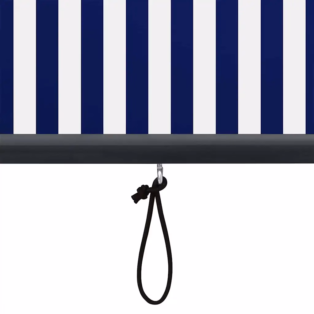 See sinivalge triibuline välikardin rulookardin aitab luua rõdul, terrassil või aianurgas mõnusa varjulise ala ning lisada privaatsust. Käsitsi juhitav mehhanism võimaldab kardinat kiiresti üles või alla kerida, et kohandada valguse hulka ja tuulekaitset. Tänu tugevatele materjalidele sobib see ainult välitingimustes kasutamiseks, pakkudes kaitset otsese päikesevalguse ja UV-kiirguse eest.