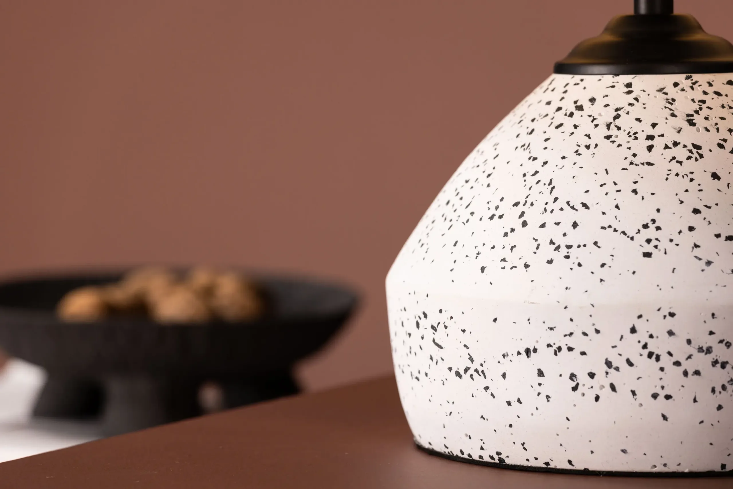 - Värvitoonid: Valge terrazzo baas, tumehall lambivari. See ajatu kombinatsioon sobib suurepäraselt põhjamaise stiiliga kodu aksendiks.