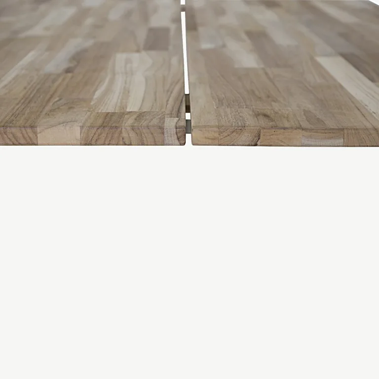 - • Lauaplaat naturaalsest tiigipuust: Igal plaadil on kordumatu puidumuster ja kaunid tooninüansid, mis muudavad selle laua igas kodus ainulaadseks. Tiigipuit on tuntud oma erakordse vastupidavuse poolest, pakkudes lauale pika kasutusea ning sobides hästi igapäevaseks kasutamiseks.