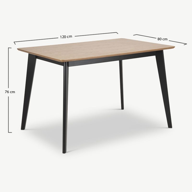 Kvaliteeti silmas pidades ehitatud laual on vastupidav tammespoonist pealisplaat ja tugevad mustad jalad, mis pakuvad igapäevaseks kasutamiseks kindlat tuge. Pinda on lihtne puhastada, muutes selle praktiliseks ja vastupidavaks valikuks tiheda elutempoga peredele.