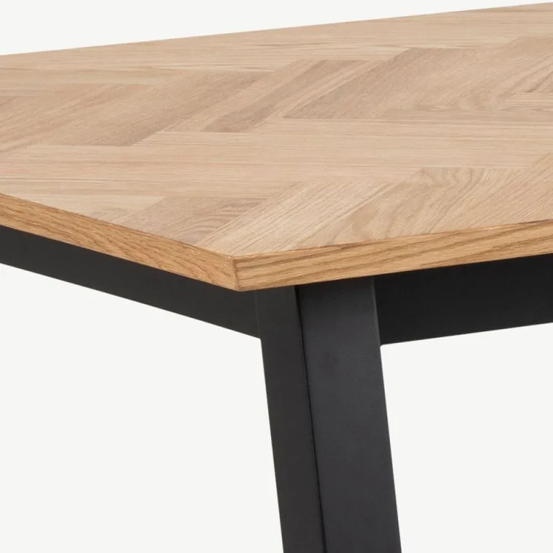 Söögilaud Jero sisaldab õlitatud tammespooni lauaplaati, mis on paigutatud kaunisse kalasabamustrisse, tõstes koheselt esile iga söögiruumi. See naturaalne viimistlus lisab sooja, kutsuva ilme ja toob esile meisterlikkuse kvaliteedi, muutes selle teie söögitoa keskpunktiks.