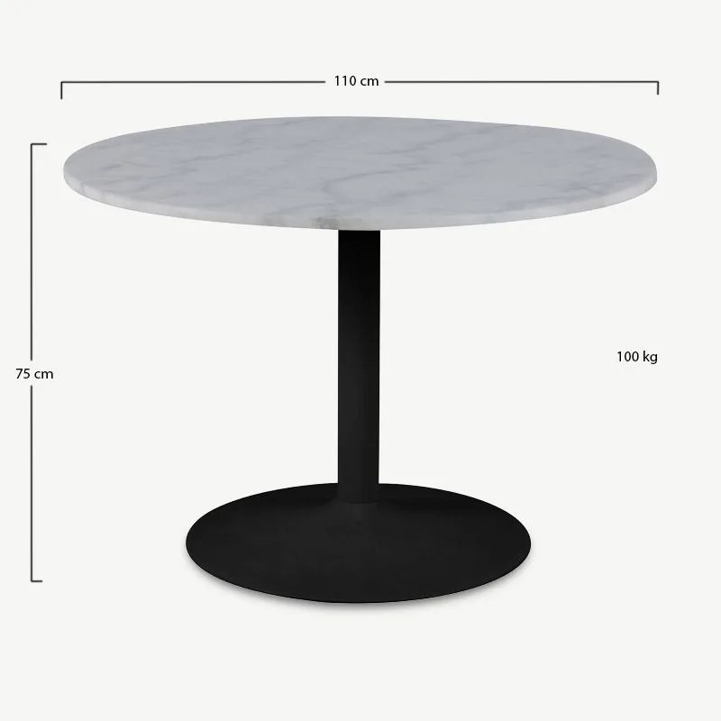 Ümar kuju ja valge marmor sulanduvad hästi igas olukorras. Vaadake seda kaunist lauda. Šikk ja kaasaegne söögilaud, mis annab teie kodule luksusliku ilme. Trompetijalatsi pulbervärvitud viimistlus täiendab disaini ja lisab sellele tugevust.